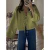 Женские модные повседневные весенне-осенние однотонные блузки и рубашки с v-образным вырезом и длинным рукавом с принтом