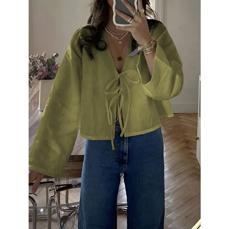 Женские модные повседневные весенне-осенние однотонные блузки и рубашки с v-образным вырезом и длинным рукавом с принтом — купить товар онлайн с бесплатной доставкой по всему миру!