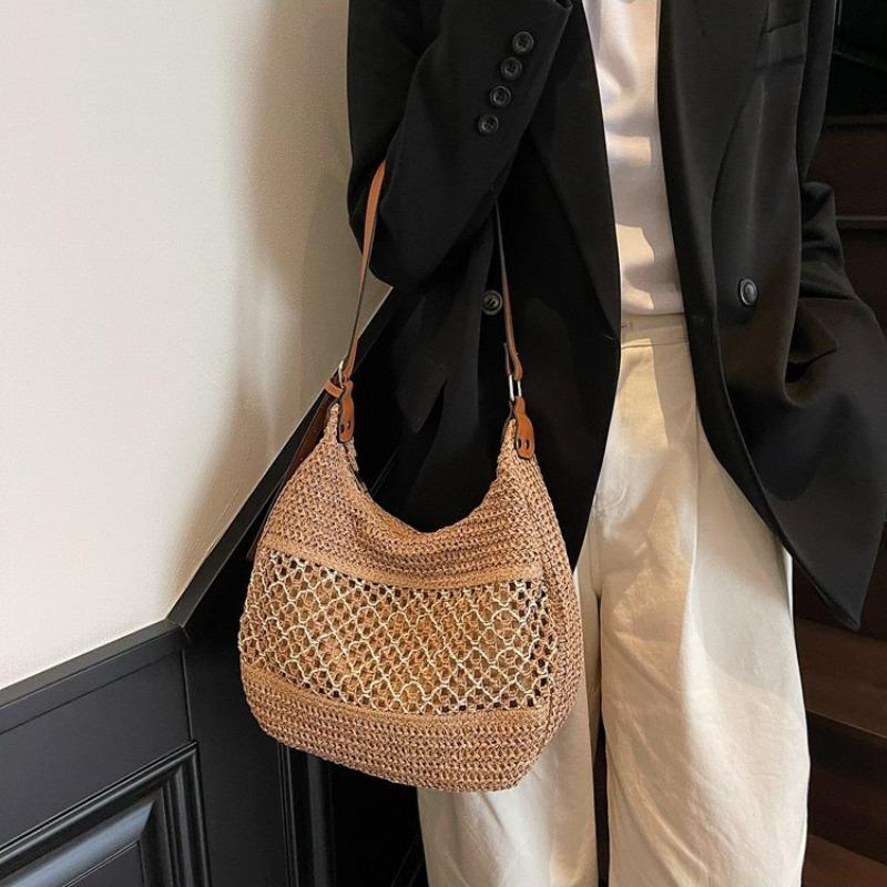 Полая универсальная плетеная сумка из соломы большой вместимости на молнии плетеная сумка сумка-тоут на плечо пляжная сумка для морского отдыха женская сумка
