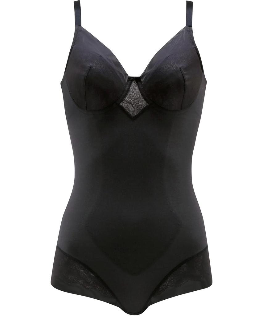- Боковины выполнены из плотного материала, создающего чистый силуэт, а верхняя часть такая же, как у бюстгальтера, что формирует естественный, округлый силуэт.