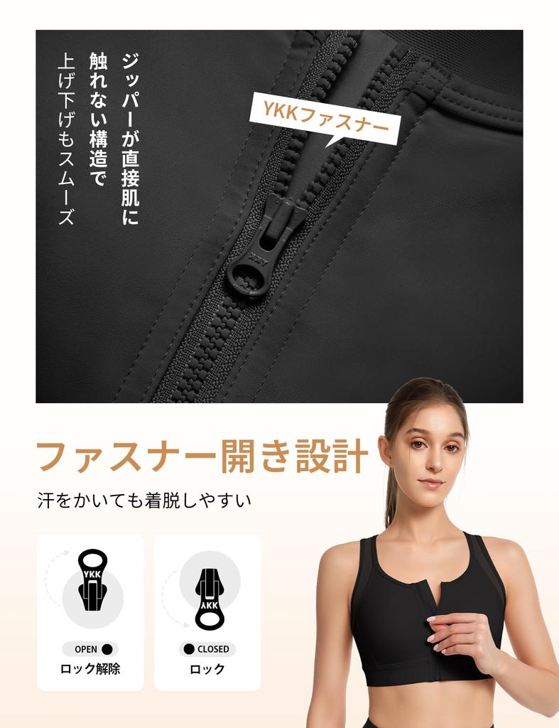 [Дизайн с застежкой спереди] Передняя молния позволяет легко надевать и снимать, даже как спортивный бюстгальтер. Между молнией и кожей есть подкладка, поэтому она не соприкасается с кожей напрямую.