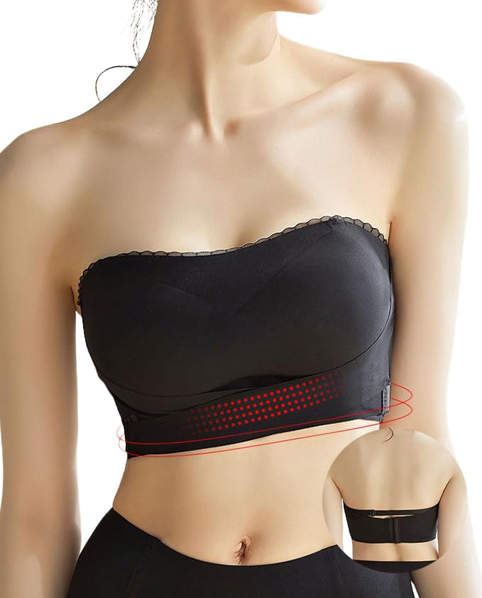 [Тройная защита от скольжения и отличная стабильность] Этот бюстгальтер без бретелей имеет передний крючок, который предотвращает откидывание верха и надежно поддерживает грудь.. Противоскользящие ремни предотвращают скольжение и обеспечивают высокую устойчивость. Бюстгальтер надежно фиксируется вокруг груди, предотвращая скольжение даже при поворотах туловища, подъеме рук или прыжках.