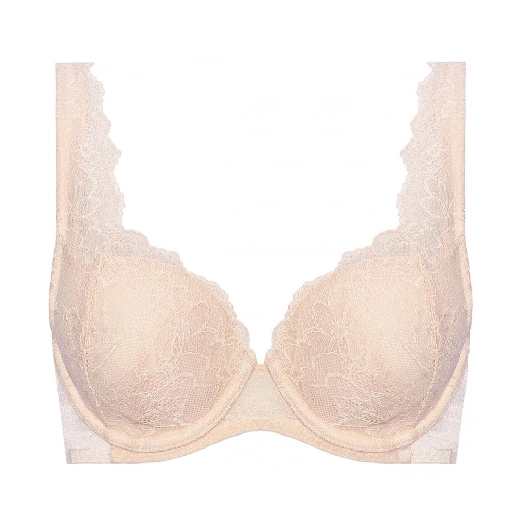 Гибкие подушечки из волокна естественным образом добавляют объем. (*Подушечки съемные. *C80-85/D75-90/E65-80 не идут с вкладышами.) Только часть боковой стороны чашки зафиксирована на месте, что помогает собрать грудь вместе.. (*Доступно только в некоторых размерах: B80/C65-85/D65-90/E65-80.)