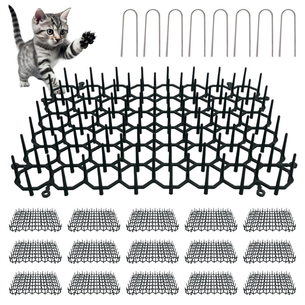Лист-отпугиватель для кошек, Коврик с шипами для отпугивания кошек, Лист для борьбы с вредителями, Набор из 15 штук, 15*20см, Защита сада, Подходит для полей, дворов и клумб, Предотвращает появление бродячих кошек и вредителей, Сетчатый дизайн, Легкая установка, Черный