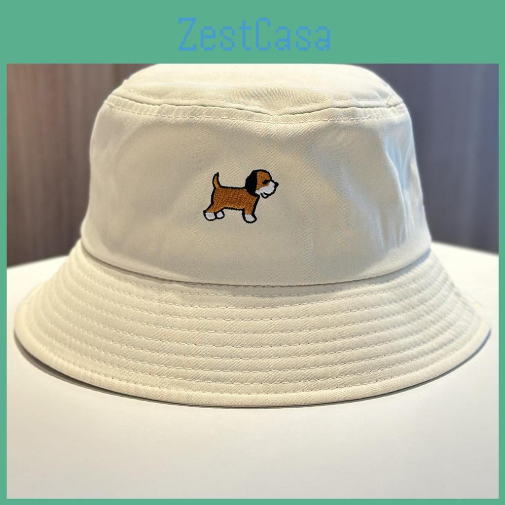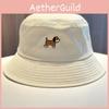 Cotton Embroidered Fisherman Hat With Cartoon Dog Embroidery Design For Women Summer Sun Protection Casual Style