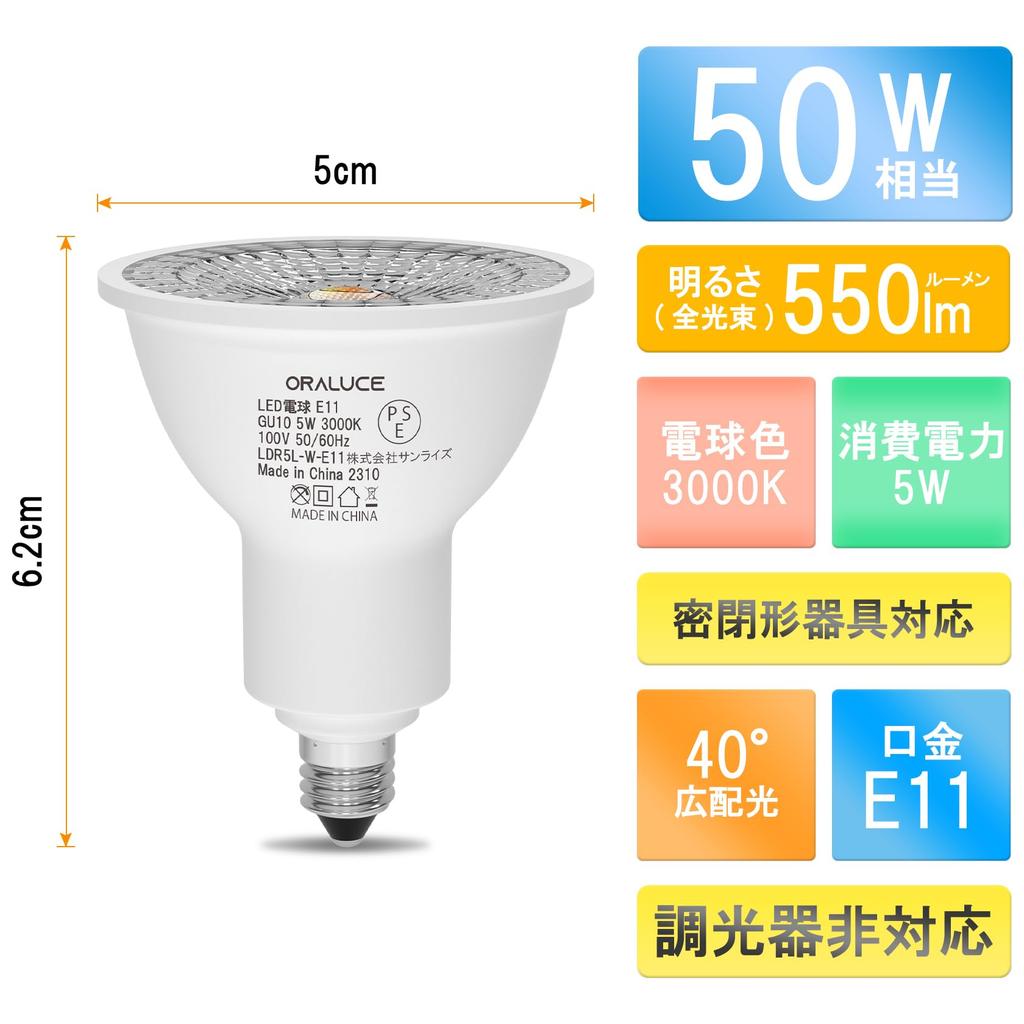 Светодиодные лампы ORALUCE, цоколь E11, эквивалент 50 Вт, теплый белый, 3000 К, 5 Вт, 550 лм, угол луча 40°, концентрированный, прожектор, совместимы с закрытыми