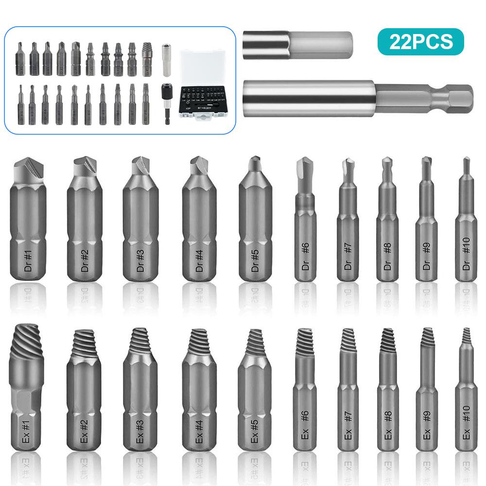 22 шт., сверла для извлечения поврежденных винтов, инструменты для быстрого извлечения сломанных болтов, легко выкручиваемых болтов, инструмент для извлечения сорванных винтов