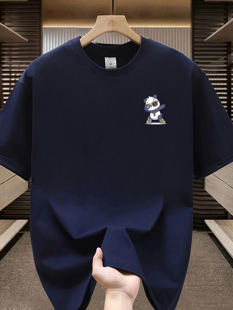 Мужская летняя модная повседневная футболка с коротким рукавом из 100% чистого хлопка, свободного кроя, спортивная, с принтом мультяшного медведя, с круглым вырезом#Цвет
