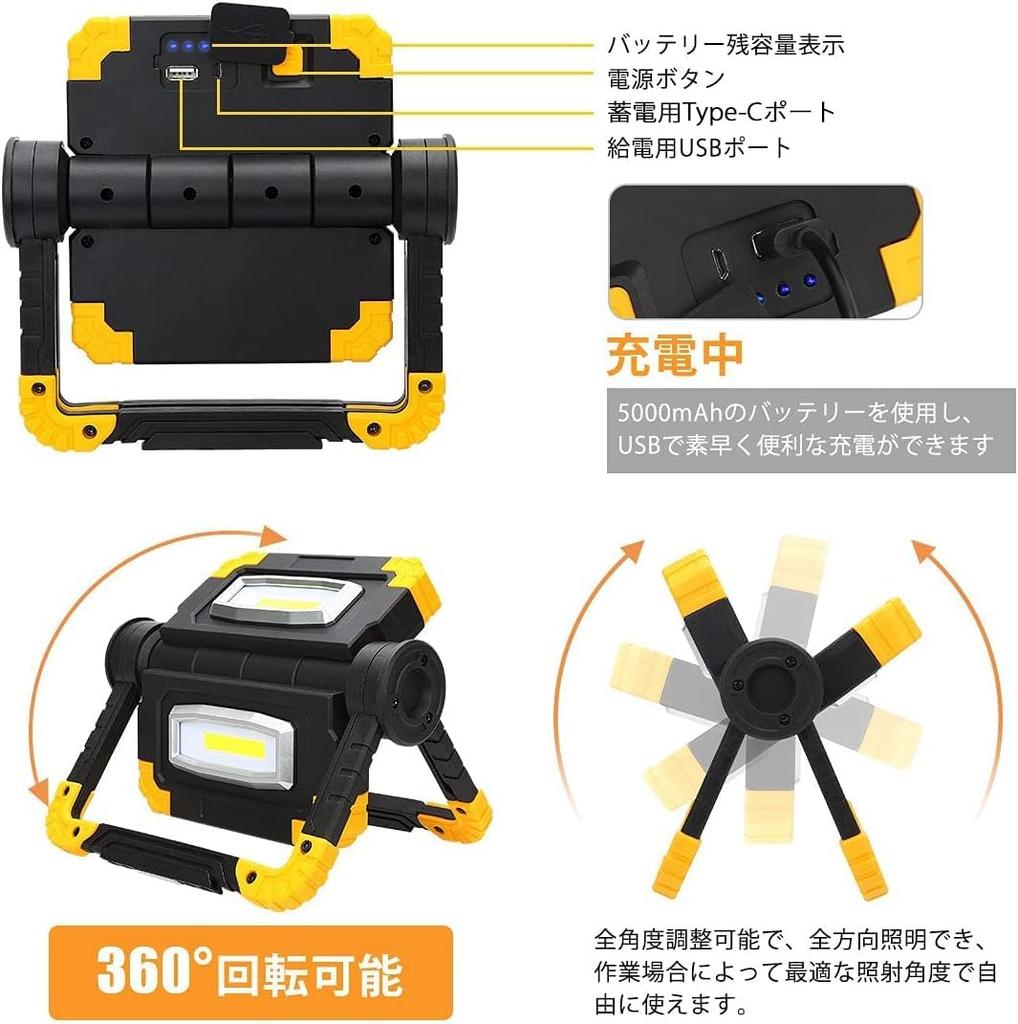 [Disaster Preparedness Supplies] Kitazawa Shoji LED Floodlight, Outdoor Rechargeable LED Work Light, IP67 Waterproof, Work Light for Fishing and
