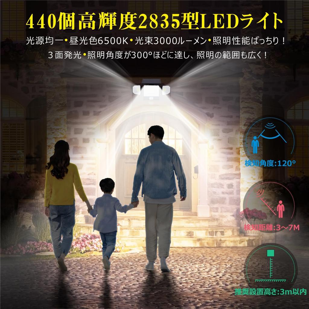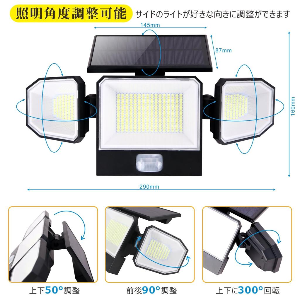 [Новинка! Высокояркие 440 светодиодов и регулируемый угол освещения] По сравнению с обычным солнечным светильником, эта лампа была всесторонне модернизирована в отношении солнечной панели, светодиодных чипов, коэффициента фотоэлектрического преобразования, яркости и внешнего вида. Он оснащен 440 светодиодами типа 2835 высокой яркости и плафоном с высоким коэффициентом пропускания, обеспечивающим равномерный источник света, цветовую температуру дневного света 6500K, световой поток 3000 люмен и отличные световые характеристики! Солнечная панель и оба боковых фонаря могут вращаться независимо, что облегчает регулировку угла.. Солнечная панель может регулироваться вверх и вниз на 50°, а боковые фонари могут регулироваться вперед и назад на 90° и вращаться вверх и вниз на 300°.. Боковые фонари можно регулировать в любом направлении, обеспечивая угол освещения примерно 300°, что обеспечивает широкий диапазон освещения.