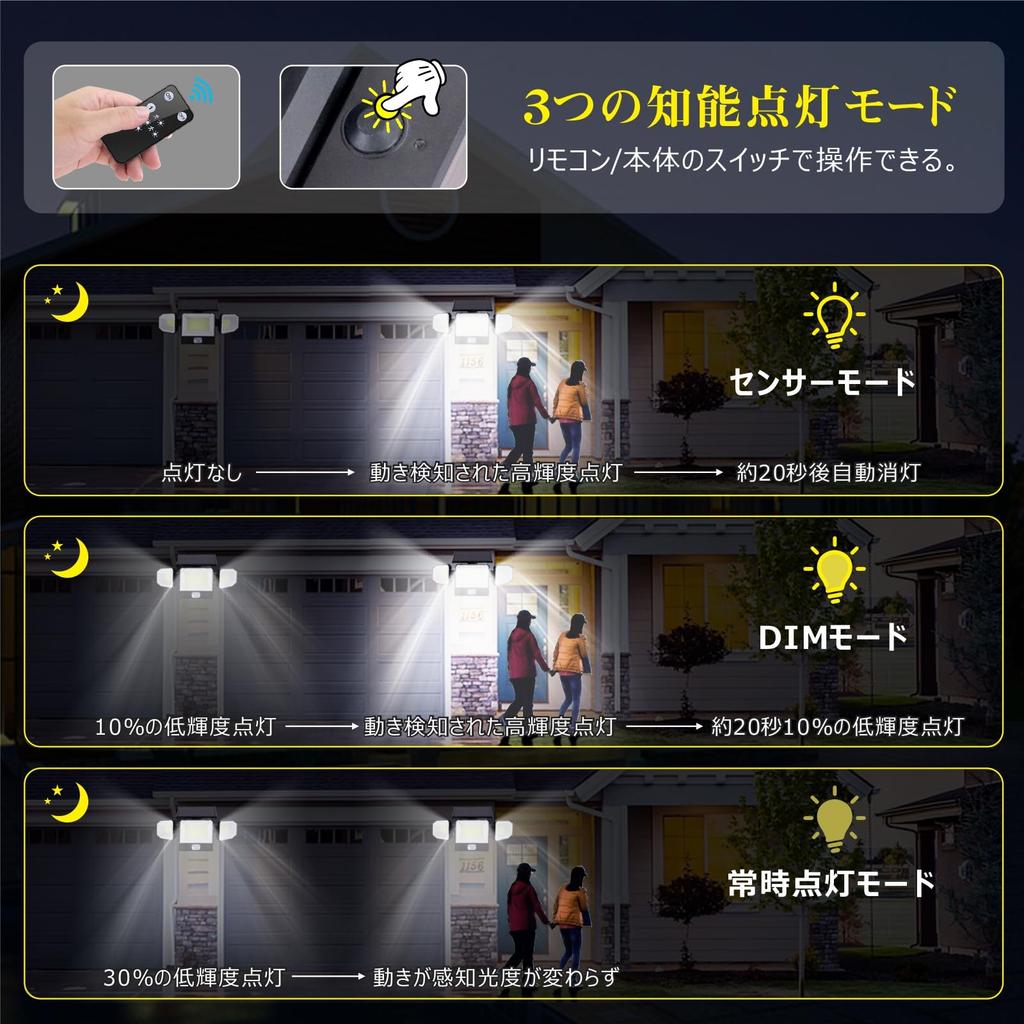 [Пульт управления в комплекте и три режима освещения] Этот светильник с датчиком имеет три режима освещения: режим датчика, режим приглушенного света и постоянный свет. Вы можете легко переключать режимы с помощью переключателя на изделии или управлять им с помощью пульта дистанционного управления.. ☼[Режим датчика] Свет не включается ночью или в темноте. При обнаружении движения человека или животного он автоматически включится на высокой яркости и выключится примерно через 20 секунд, если движения нет.. ☼[Режим тусклого света] Свет будет автоматически включаться на 10% яркости при отсутствии движения. При обнаружении движения человека или животного он автоматически включится на 100% яркости и вернется к низкой яркости примерно через 20 секунд, если движения нет.. ☼[Режим постоянного света] Свет не включается днем или в условиях яркого освещения. Когда наступает ночь или становится темно, он автоматически включается на 30% яркости и продолжает светить непрерывно.