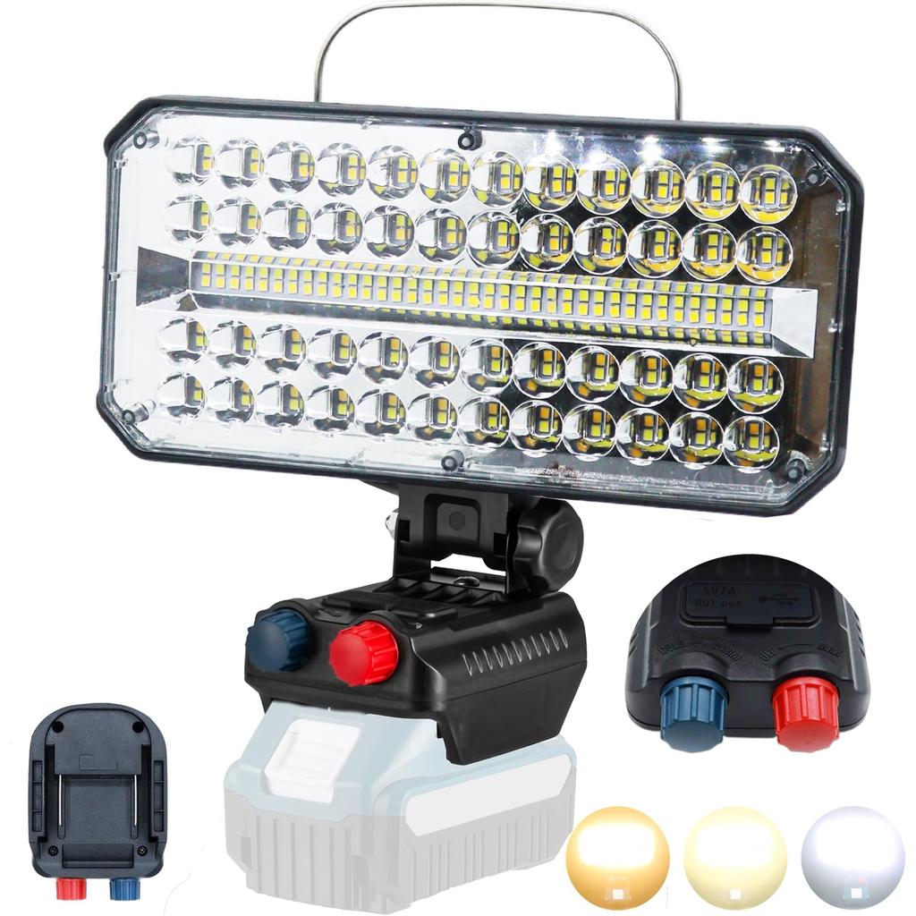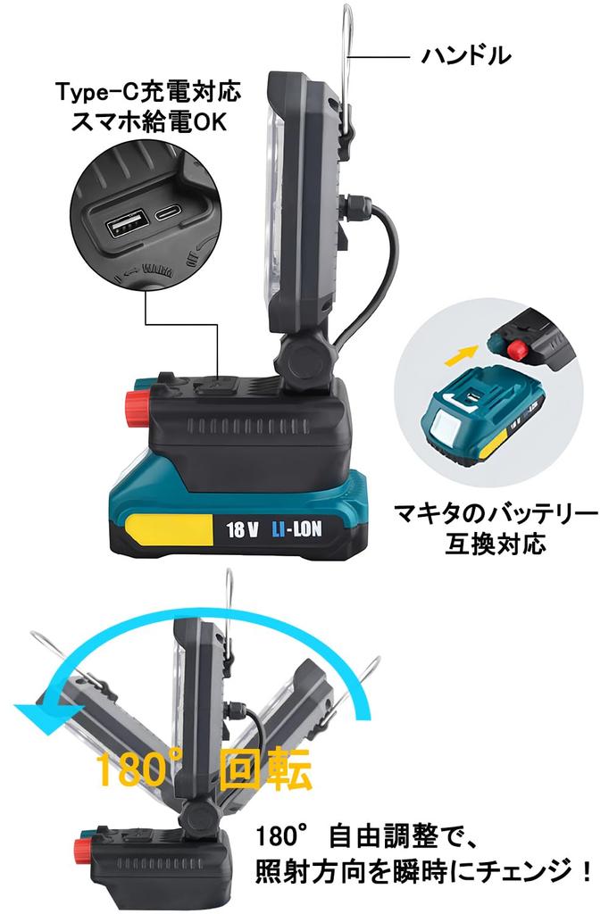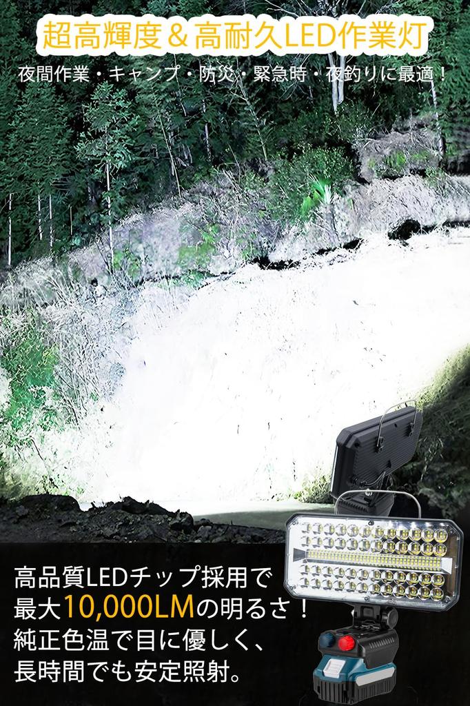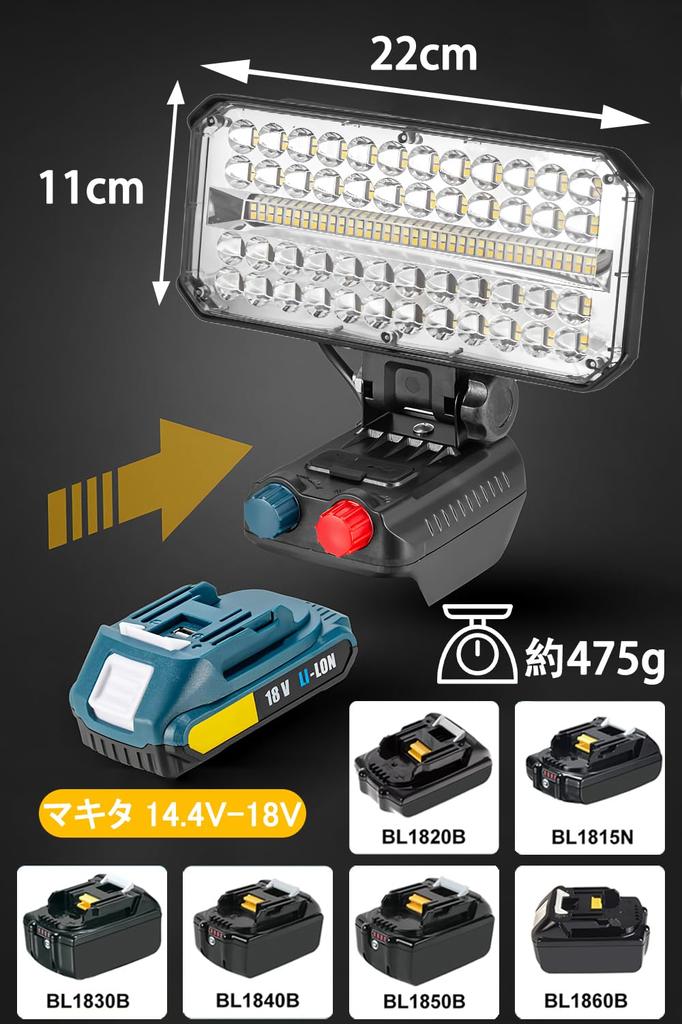 [Совместимость с 14,4 В/18 В, Прожектор высокой яркости, Дизайн с постоянным током] Удобно используйте ваш существующий источник питания 14,4 В/18 В! Обладая поразительной сверхвысокой яркостью в 10 000 люмен, этот свет обеспечивает мощное освещение для темных строительных площадок, ночных работ и ночной рыбалки на большой площади. (как свет, привлекающий рыбу). Конструкция с постоянным током поддерживает постоянную яркость даже при длительном использовании.. Это надежный союзник для поддержки эффективности работы. Этот светодиодный рабочий фонарь совместим со всеми литий-ионными аккумуляторами 14,4 В-18 В. уведомление: Батарея не входит в комплект поставки; пожалуйста, предоставьте свой собственный. Совместим с литий-ионными аккумуляторами 14,4 В-18 В, такими как BL1415N, BL1430B, BL1440, BL1450, BL1815N, BL1830B, BL1840, BL1850 и BL1860B.