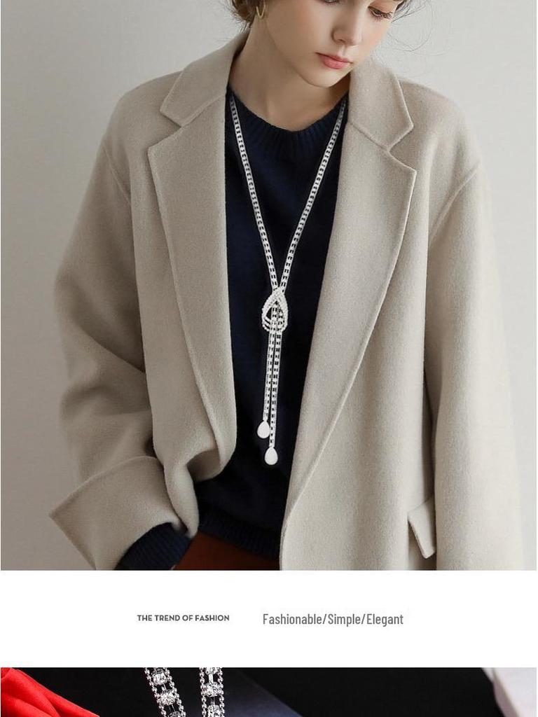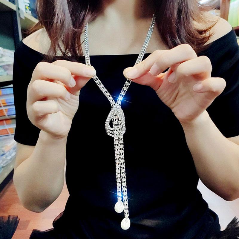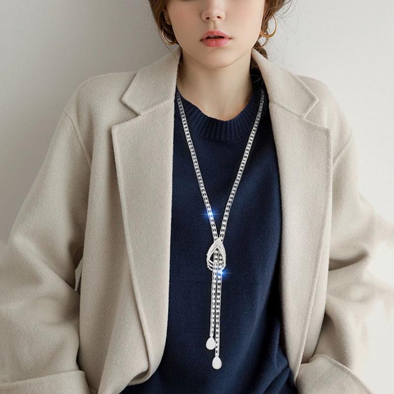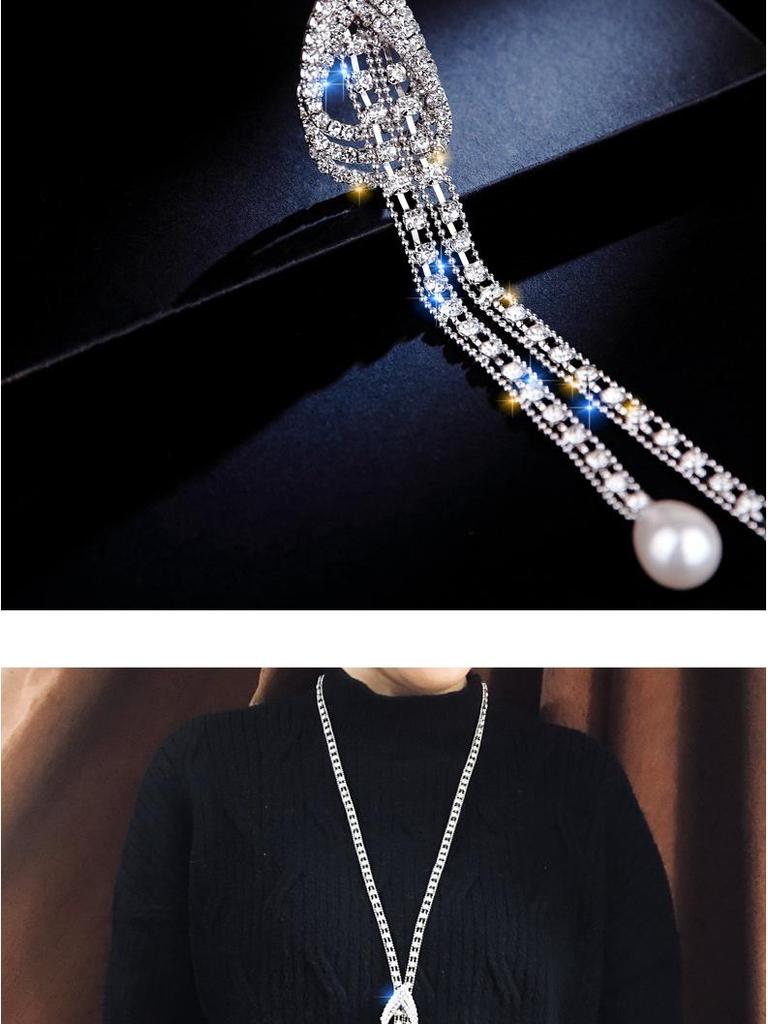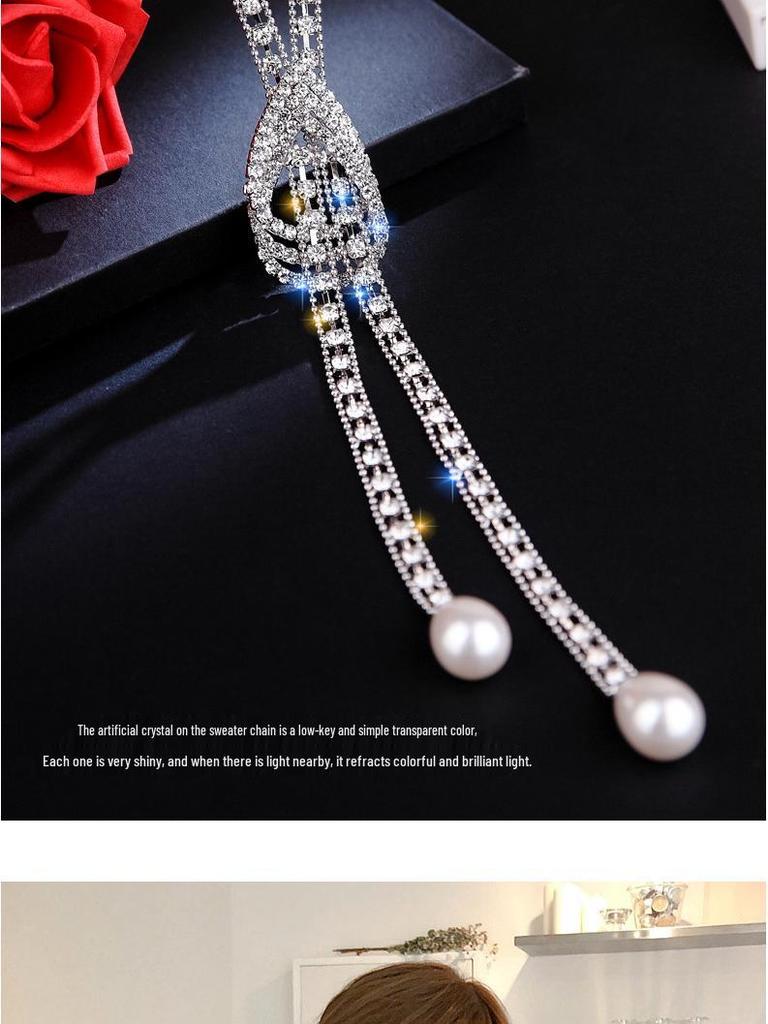 Корейское ожерелье-свитер в виде капли воды с флеш-бриллиантами и жемчужными акцентами