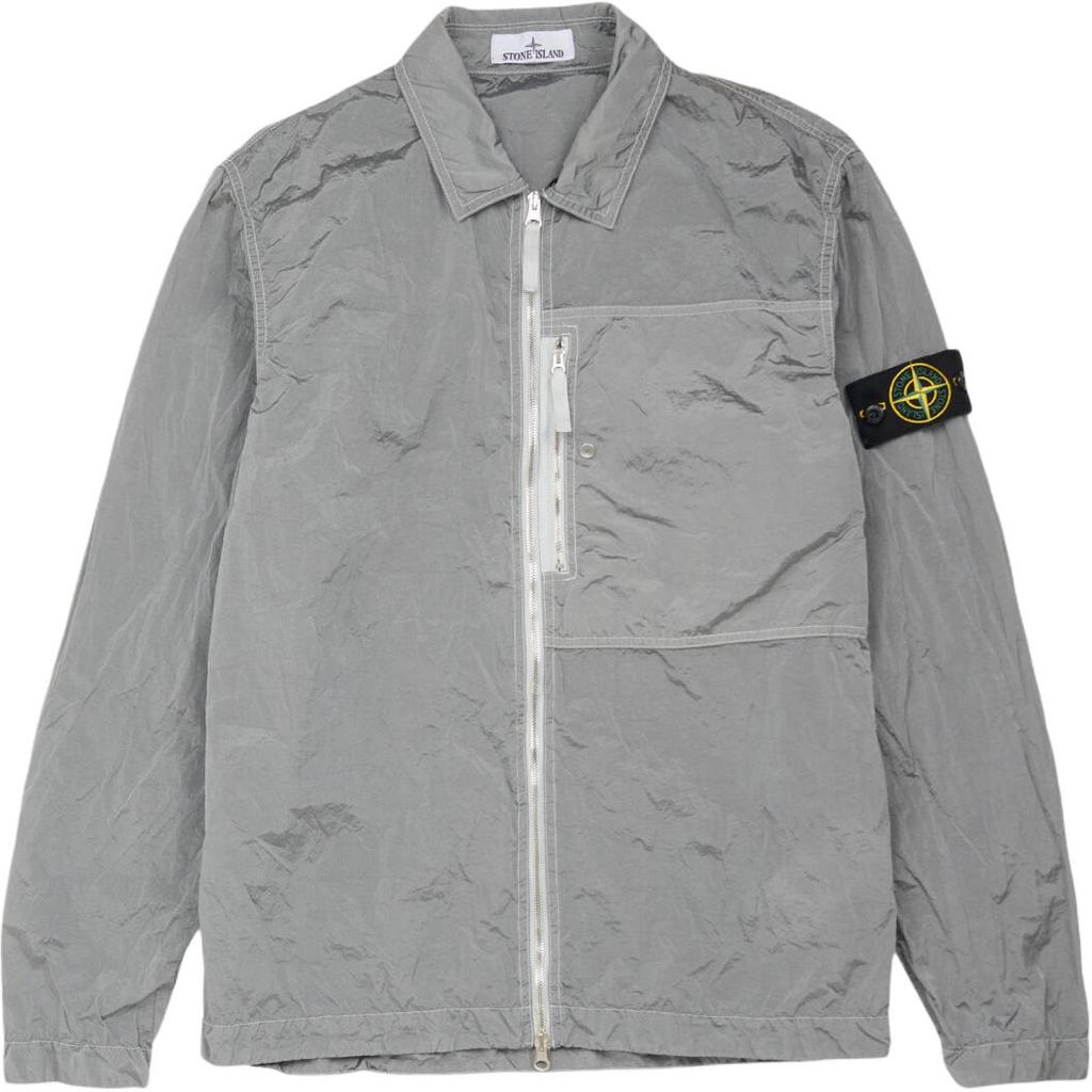 STONE ISLAND Ss25 Куртка из нейлона Metal с нашивкой с логотипом на молнии с длинным рукавом Мужские куртки Серебристо-серый K1S1512000-05S0019-V0061
