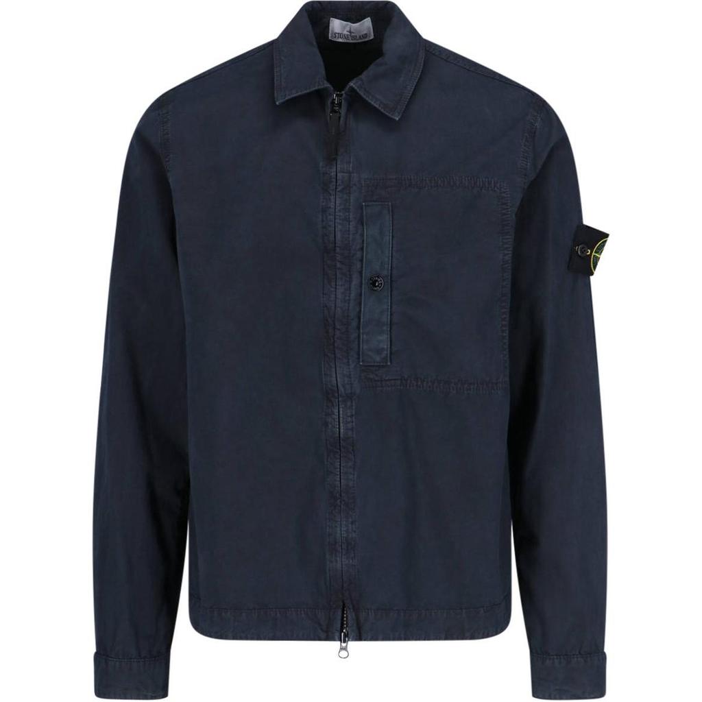 STONE ISLAND Однотонная рубашка с логотипом на молнии, с длинным рукавом, мужская, синяя K1S1512000-32S00WN-V0120