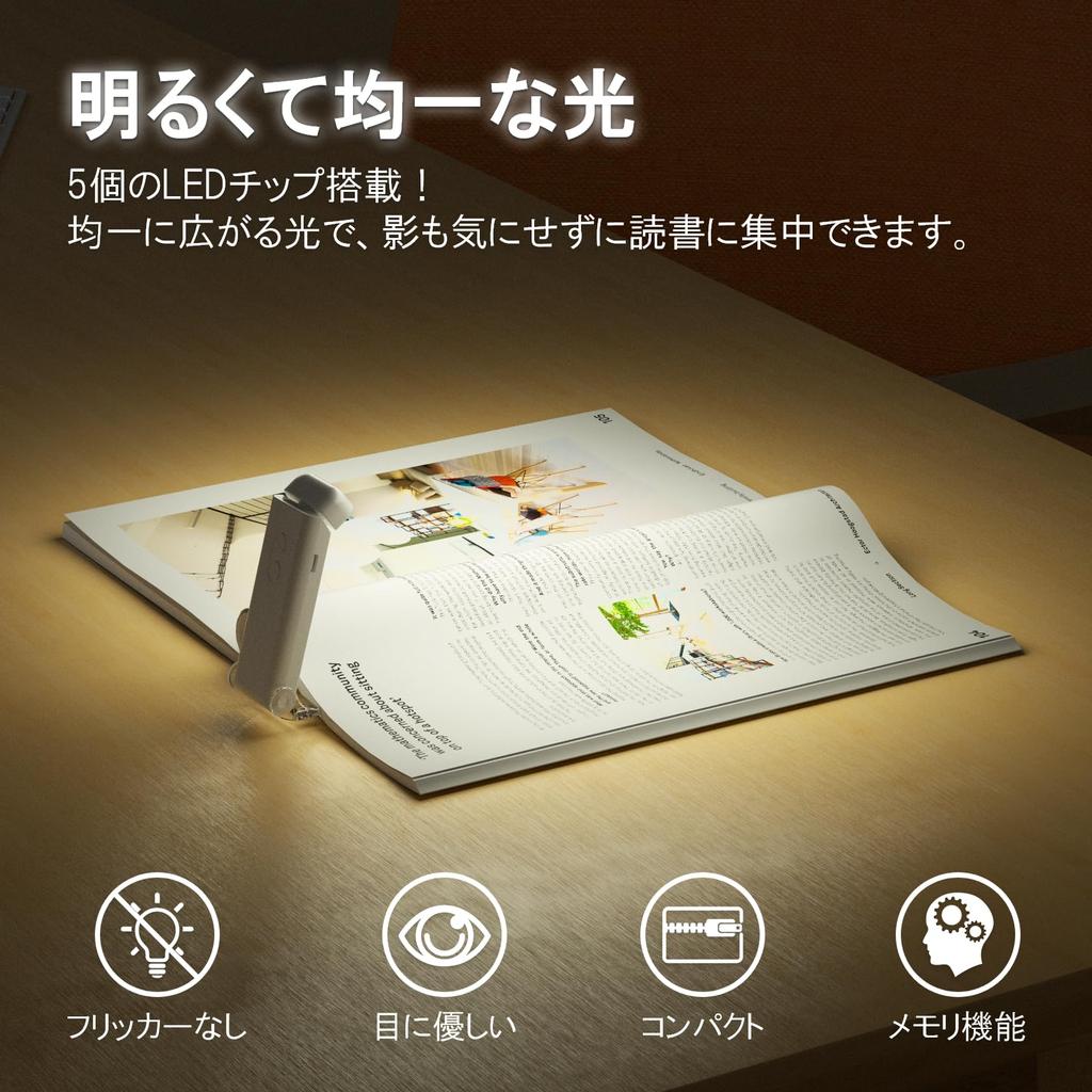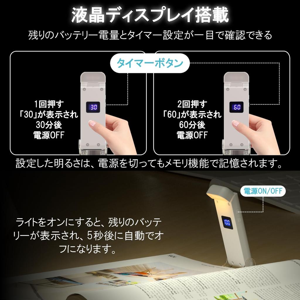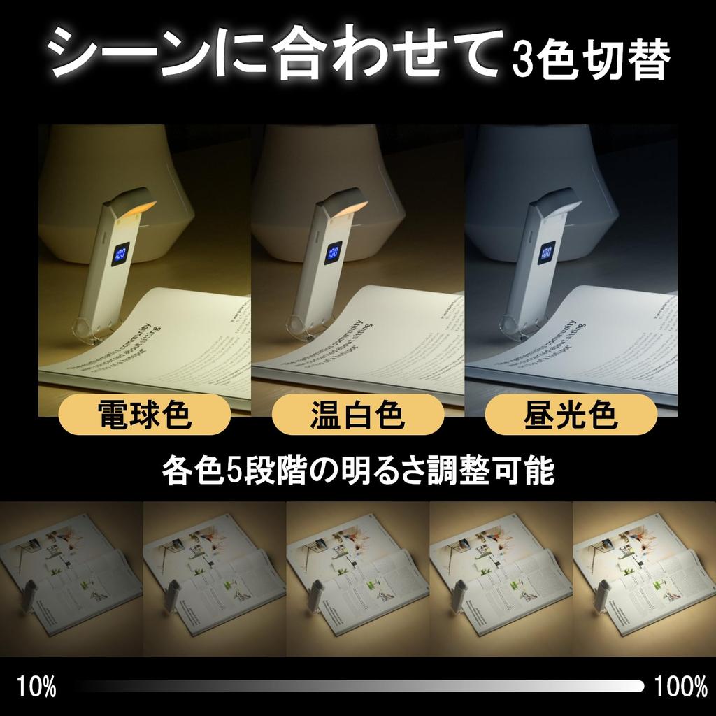 LUTW Portable Reading Light, USB Rechargeable, Music Light for Books, 3 Color Temperature Settings, 5 Brightness Settings, LCD Display, 3060 Minute