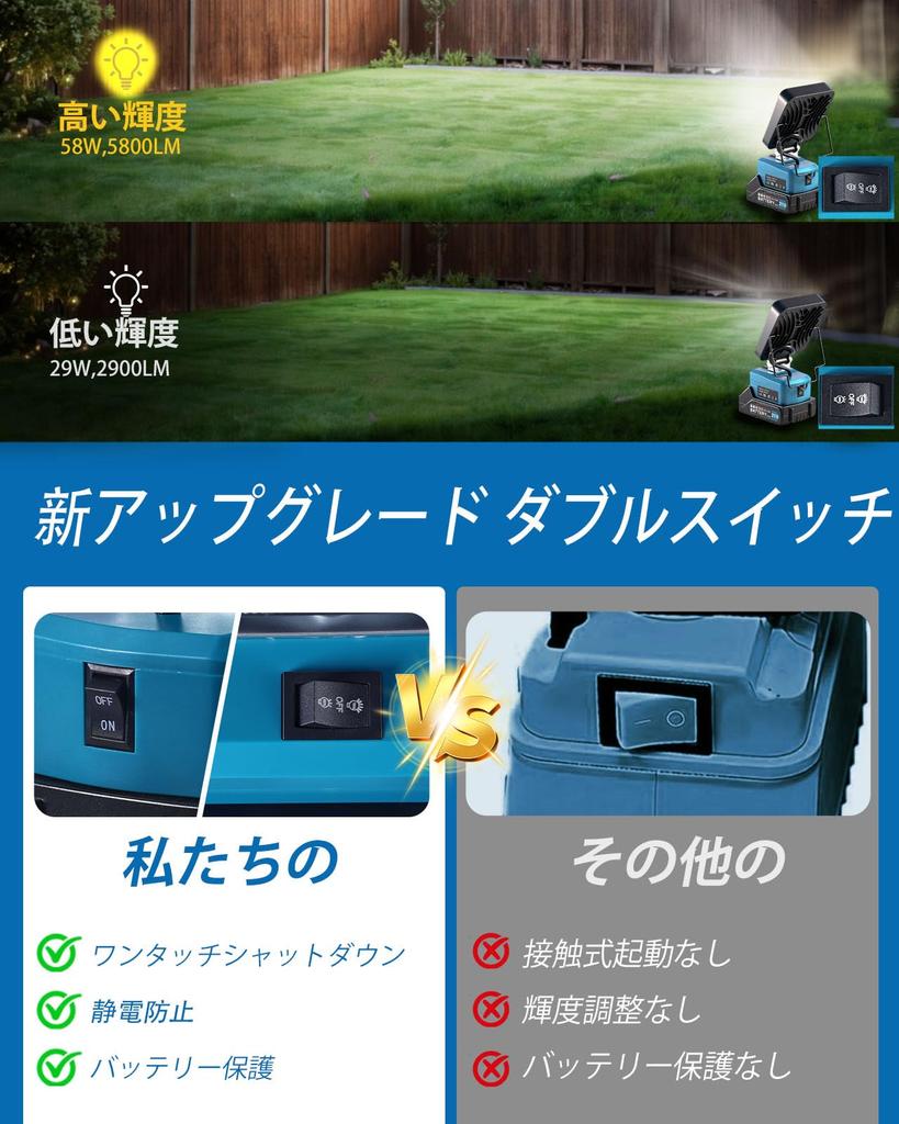 Tumemut LED Floodlight, 58W, 5800LM, 16 Ultra-Bright Beads, Rechargeable Work Light, IP65 Waterproof and Dustproof, Power Outage & Low Voltage