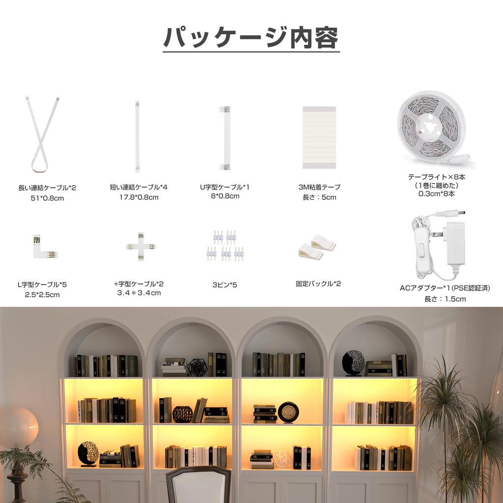 ✅[Содержимое упаковки]: ① Светодиодная лента, ② Адаптер питания, ③ Соединительный кабель, ④ Соединительный коннектор, ⑤ Крепежная скоба, ⑥ Инструкция на японском языке