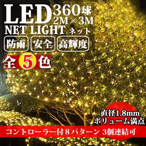 [Соответствует Закону об электробезопасности PSE (Уведомление о бизнесе, представленное в Министерство экономики, торговли и промышленности) [Оригинальный продукт от производителя] Светодиодная сетка, Стандартная модель, 360 светодиодов, 2 м x 3 м, Диаметр провода 1,8 мм, с разъемом, Возможность последовательного подключения до 1000 светодиодов. 8 режимов освещения, функция памяти (Восстанавливает тот же световой узор при отключении и повторном подключении, устраняя необходимость в сбросе.).