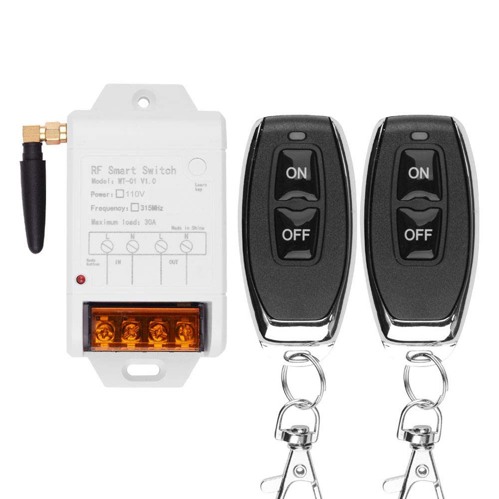 Fushionsea Переключатель с дистанционным управлением, 110 В Беспроводной пульт управления насосом, Реле 30 А, 315 МГц Умный пульт управления двигателем высокой мощности, Управляет водой на ферме