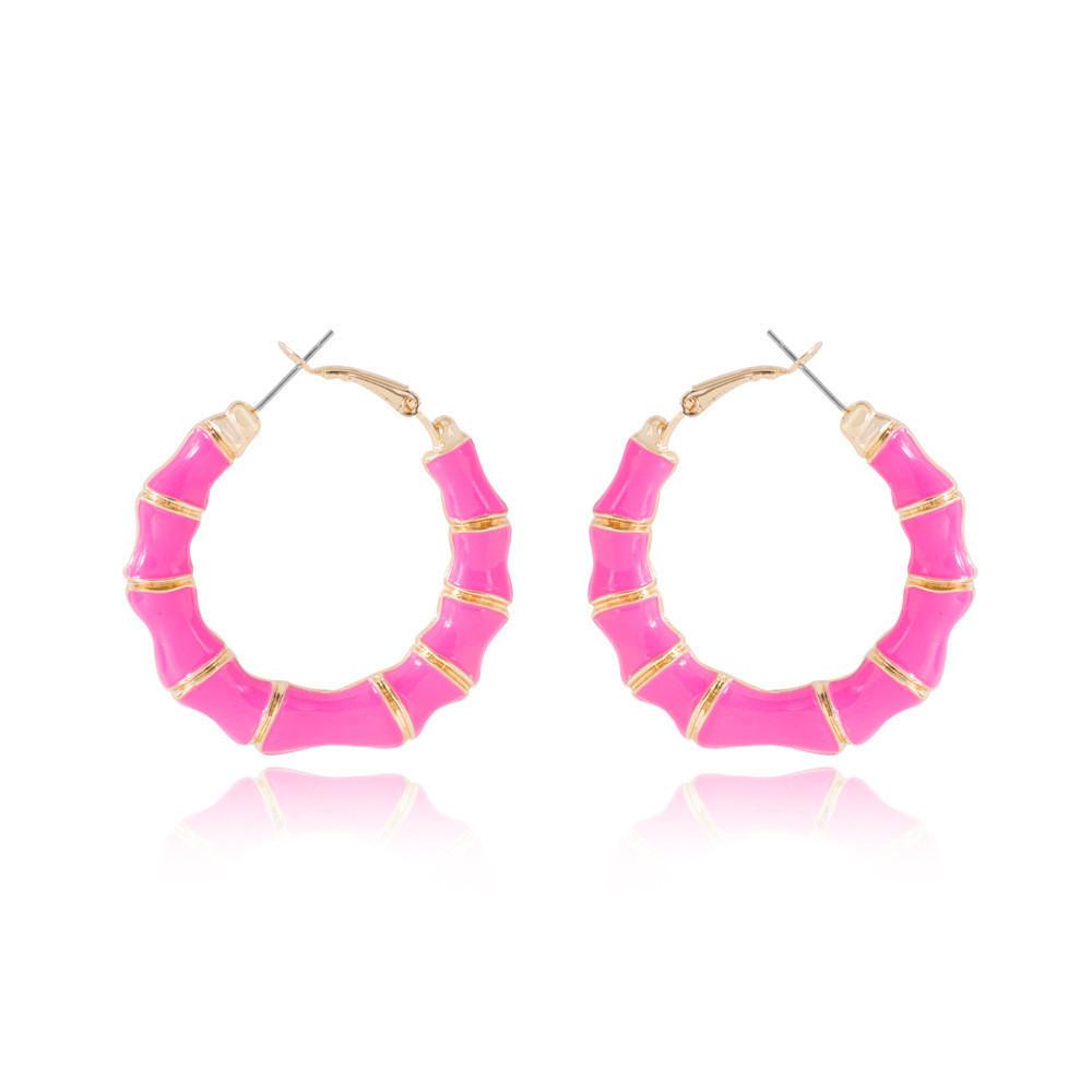 Модные Преувеличенные Розовые Серьги-Кольца из Бамбука для Женщин 2021 Лето