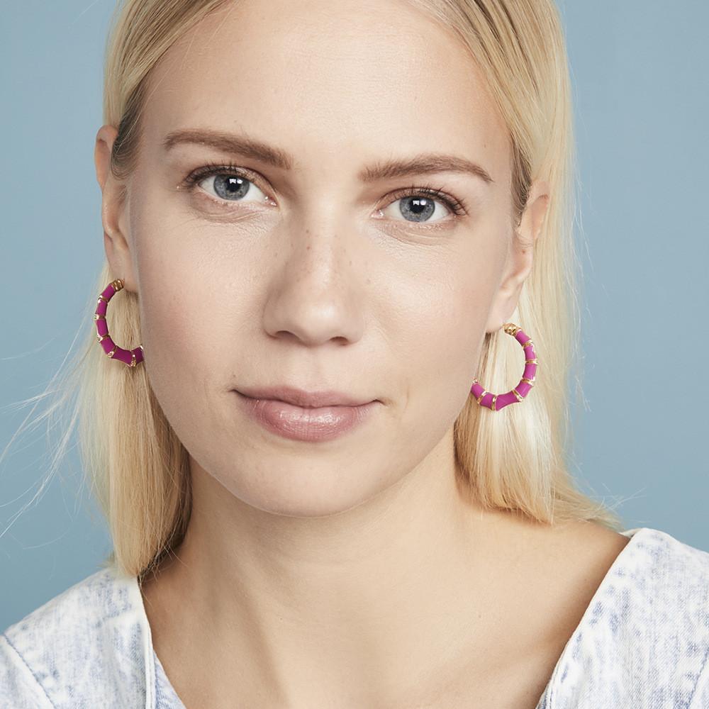 Привлекательный дизайн: Эти яркие розовые серьги-кольца созданы для того, чтобы сделать смелое модное заявление, и идеально подходят для дополнения любого наряда.