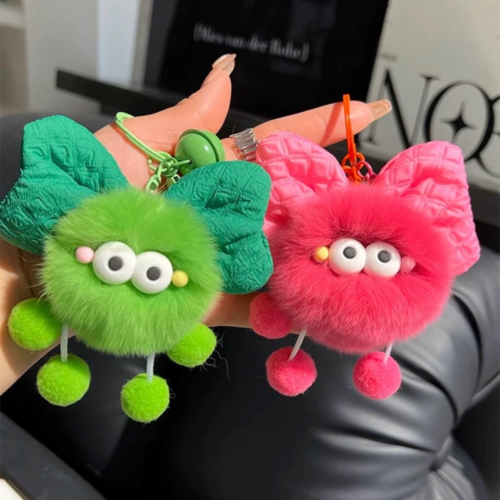 Adorable Furry Rabbit Fur Bowknot Keychain Accessory For Cute Girls And Women