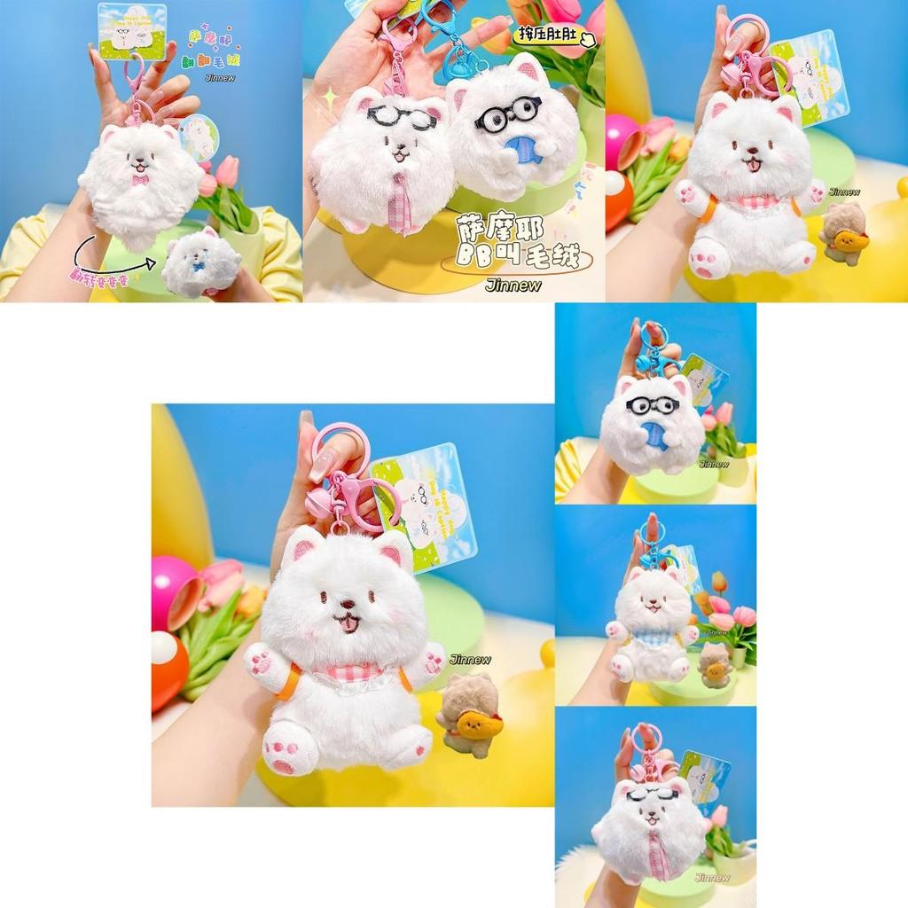 Очаровательный оригинальный плюшевый брелок-подвеска из серии «Щенок самоеда» для забавного подарка и украшения
