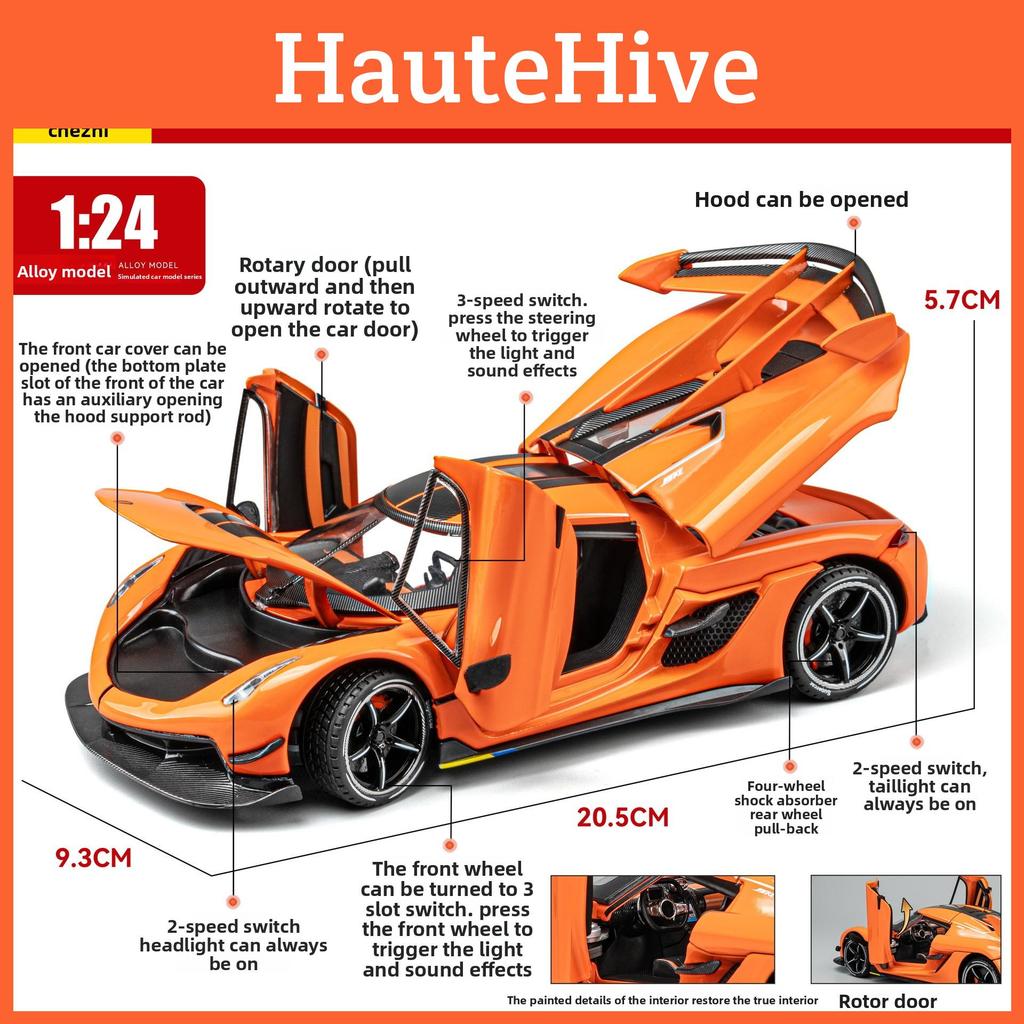 Модель спортивного автомобиля Koenigsegg, игрушка из сплава со звуком, светом, открывающимися дверями для детской игры