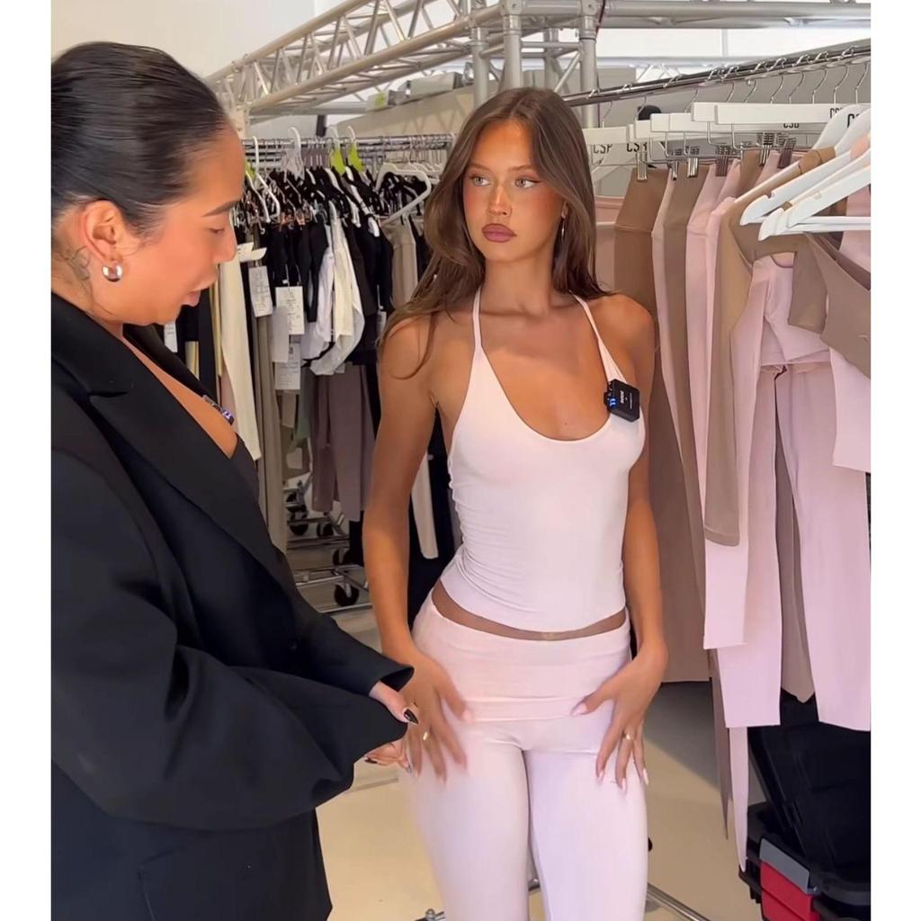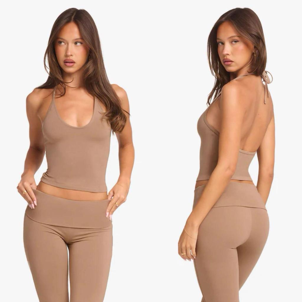Европейские и американские светло-розовые расклешенные брюки для йоги и спортивный топ-халтер