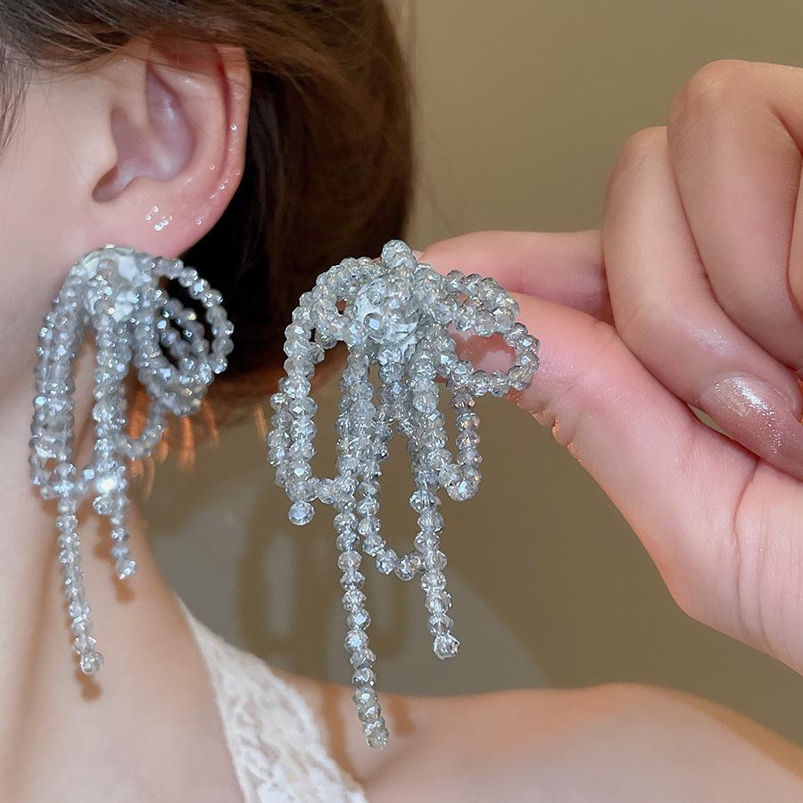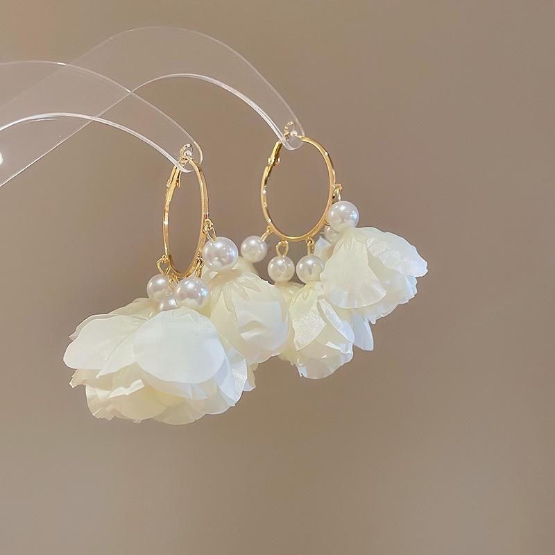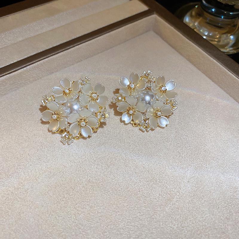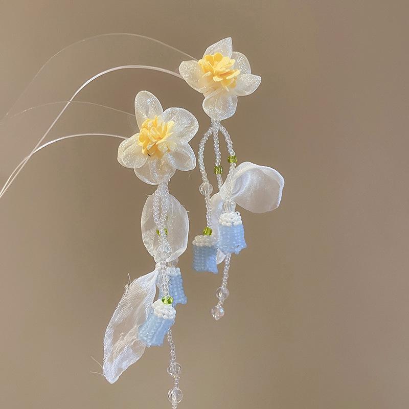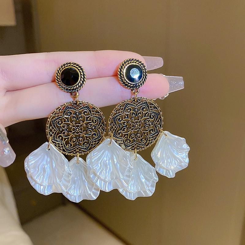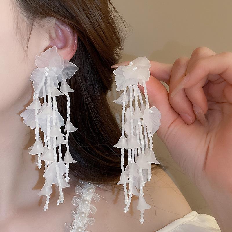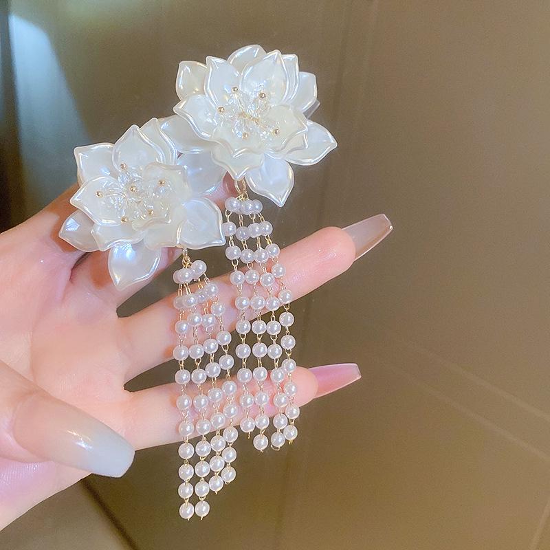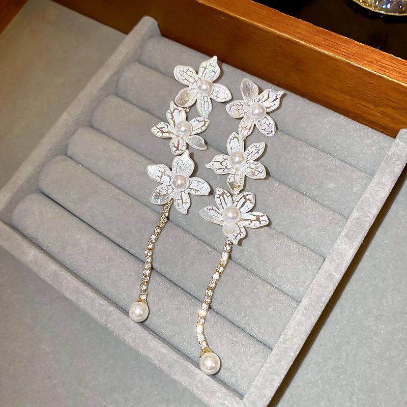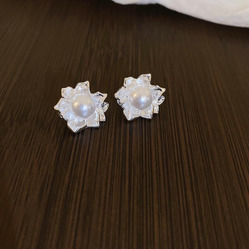 Серьги-кисточки из жемчуга 'Серебряная игла': Ретро цветочный дизайн, милая личность, роскошные серьги-гвоздики для женщин