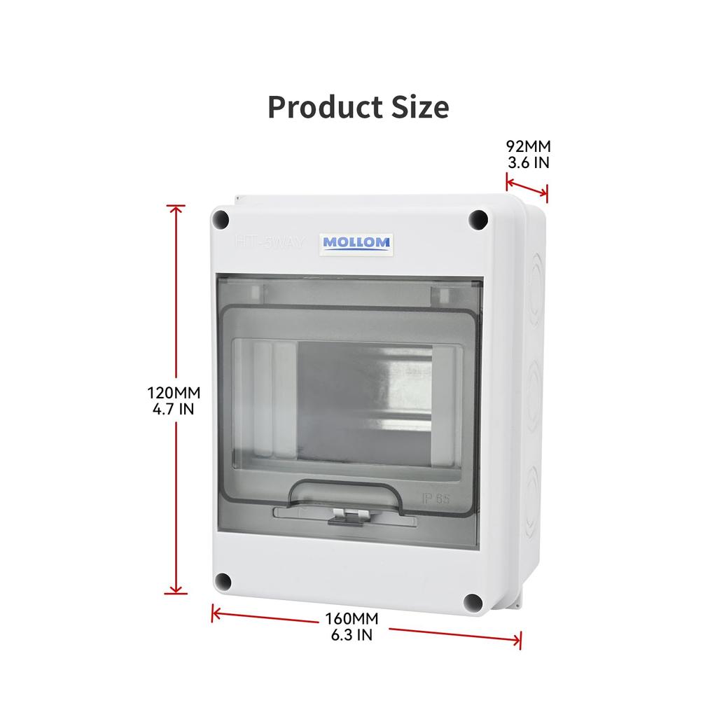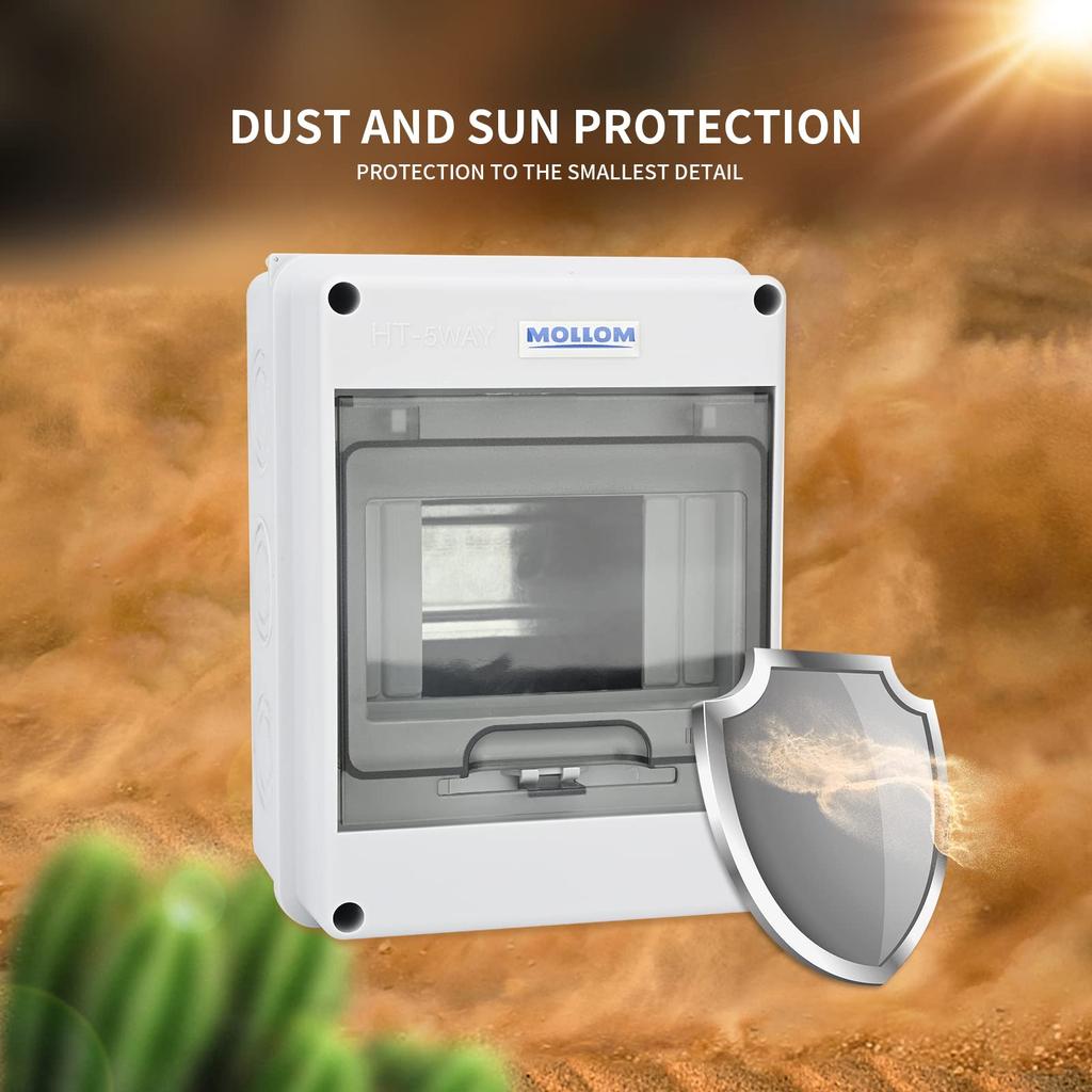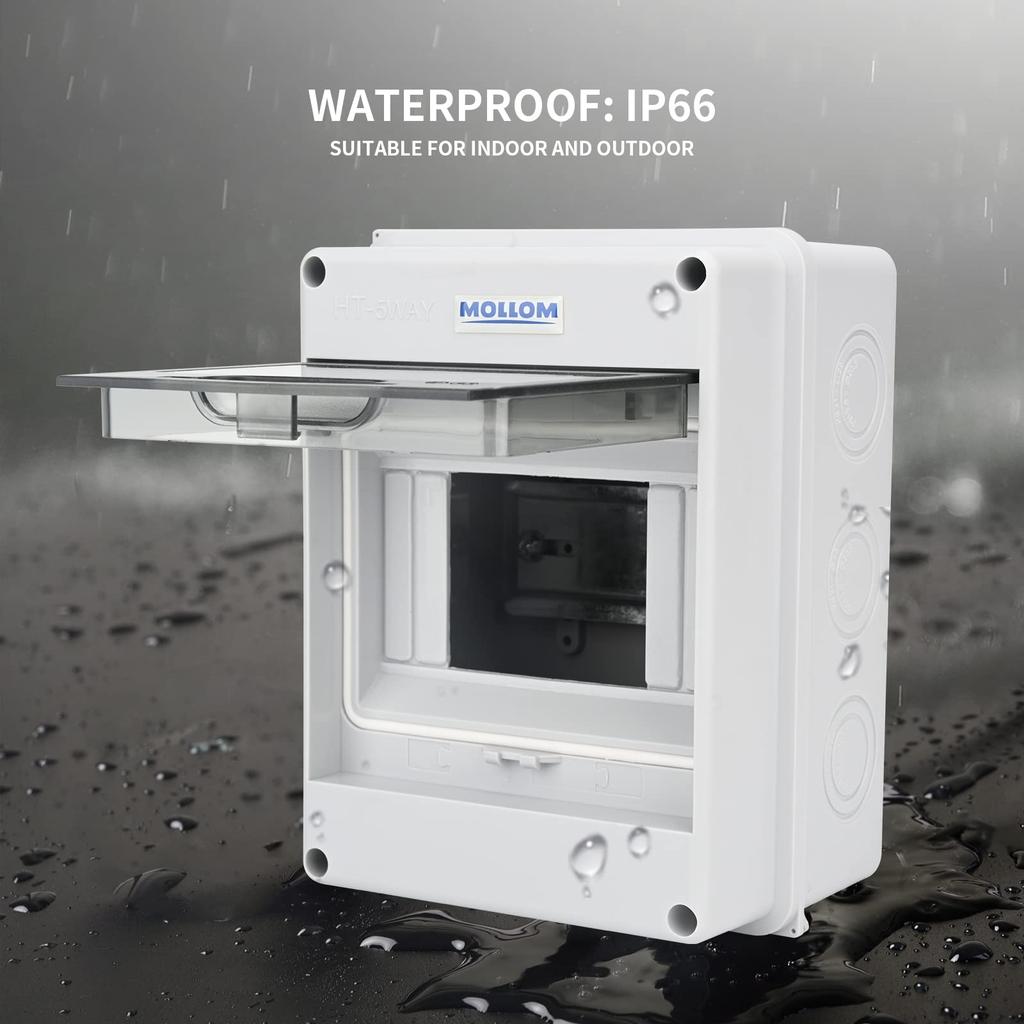 MOLLOM 5-полюсный автоматический выключатель MCB Распределительная защитная коробка с DIN-рейкой, IP65 водонепроницаемая, для внутреннего и наружного использования
