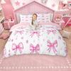 Комплект пододеяльника в стиле принцессы Homewish, Розовый комплект постельного белья с лентами и бантами, Комплект пододеяльника с бантами для девочек