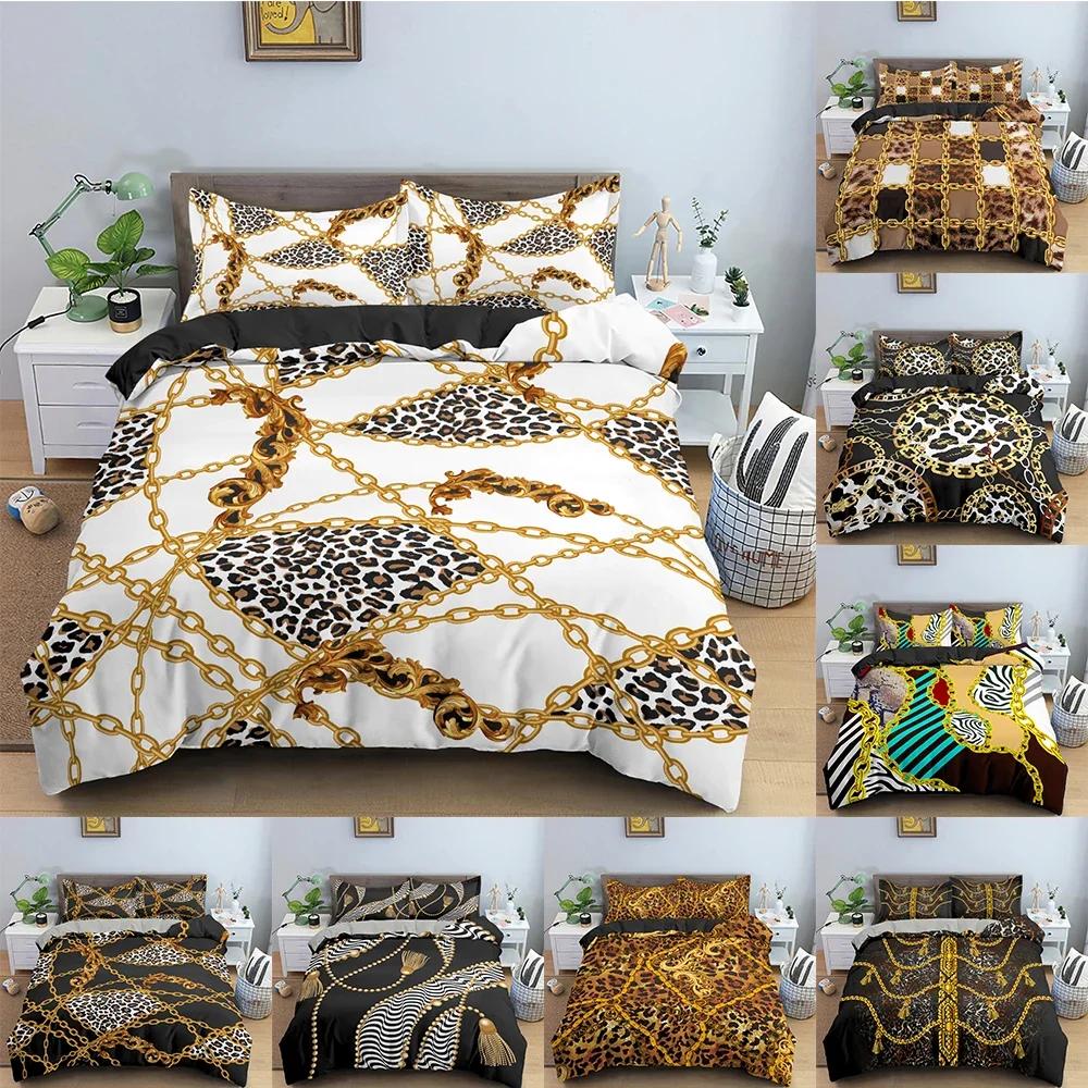 Пододеяльник с золотыми цепями, постельный комплект с леопардовым узором, чехлы для одеяла для спальни, полуторный, королевский размер, мягкий чехол для одеяла, домашний текстиль