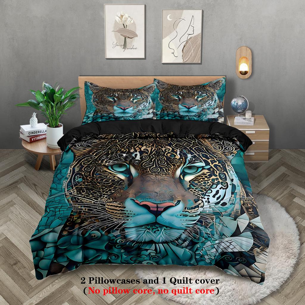 3 шт. Свирепый леопард с животным принтом Бесчиповый постельный комплект, Мягкий и удобный, Подходит для спален общежитий различных размеров