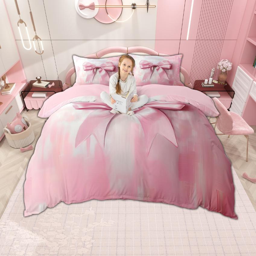 Комплект пододеяльника Homewish Watercolor Bowknot 2 шт./3 шт., Постельное белье с галстуком-бабочкой для девочек, Комплект пододеяльника с лентой-бантом принцессы омбре