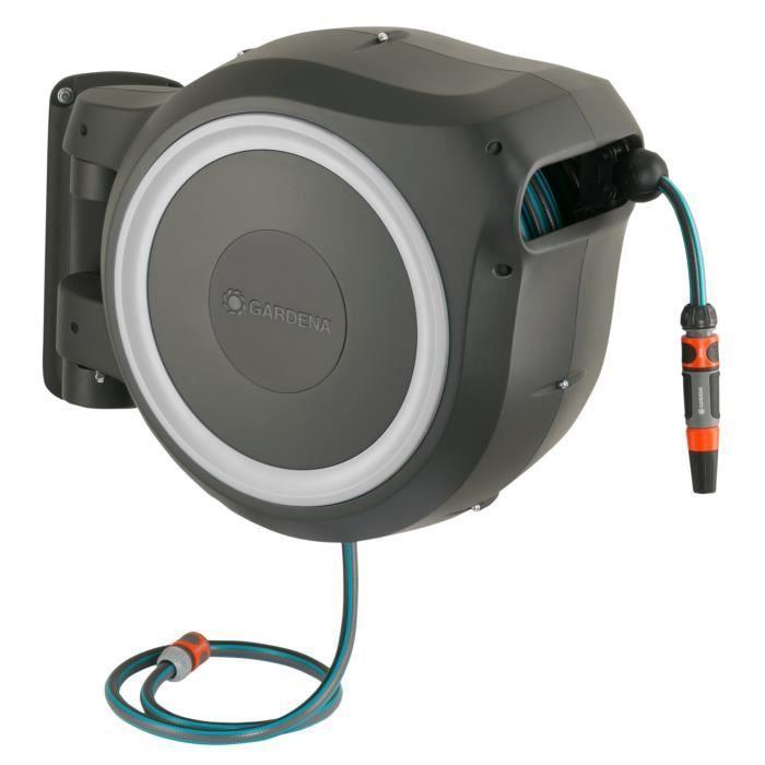 GARDENA Dévidoir automatique mural RollUp® M/L liseret blanc – Longueur 25m – Ø13mm – Kit complet – Garantie 5 ans (18622-20)