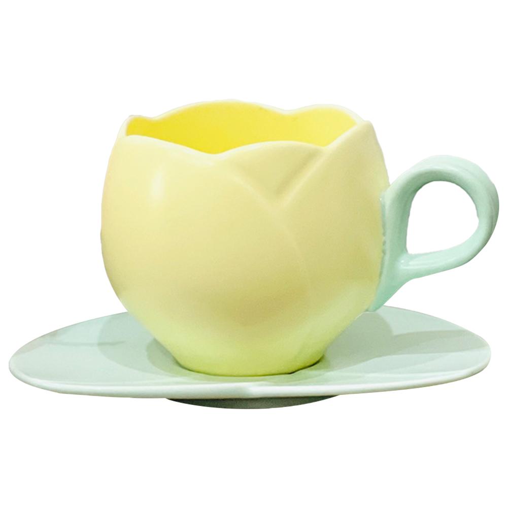 Прекрасная чашка для напитков с блюдцем, керамическая чашка для чая в форме тюльпана, креативная винтажная кружка для чая-тюльпана для дома, для послеобеденного чая
