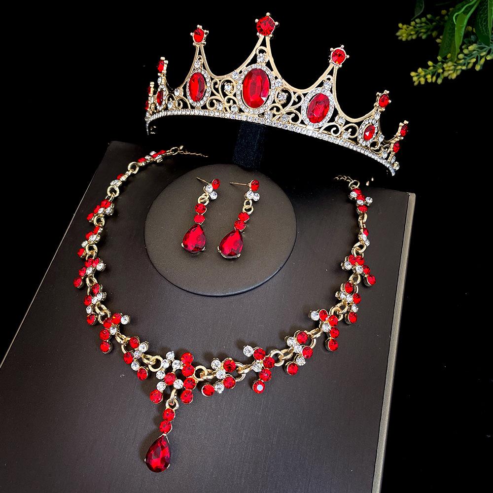 Красная Корона Невесты Набор из Трех Предметов Свадебная Корона Головной Убор Ожерелье Серьги Корейский Стиль Супер Фея Аксессуары для Свадебного Платья