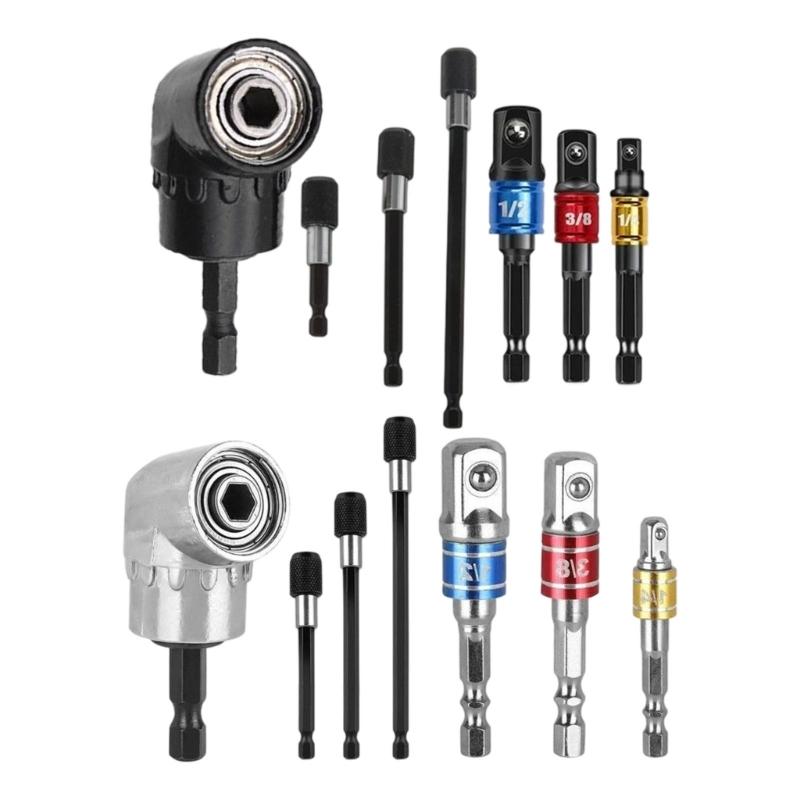 Профессиональный 7-предметный держатель для бит и торцевых головок с прямым углом, компактный угловой адаптер, прочная конструкция из углеродистой стали