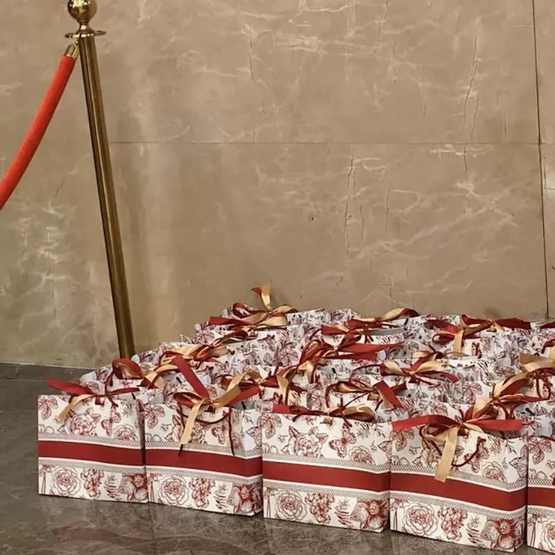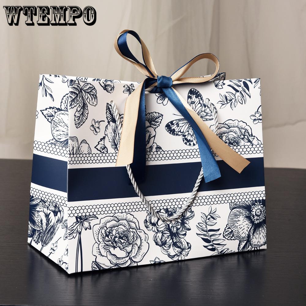 WTEMPO Ленточный бант Подарочные пакеты для покупок с ручками DIY Складные Печатные Универсальные Сумки для хранения Свадебные Розовые Бумажные пакеты Пакеты для подарков на фестиваль/вечеринку