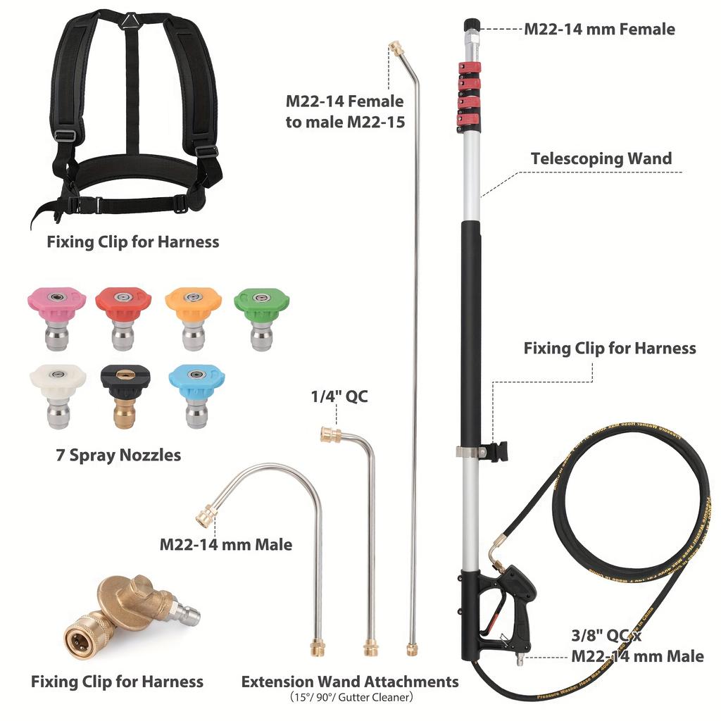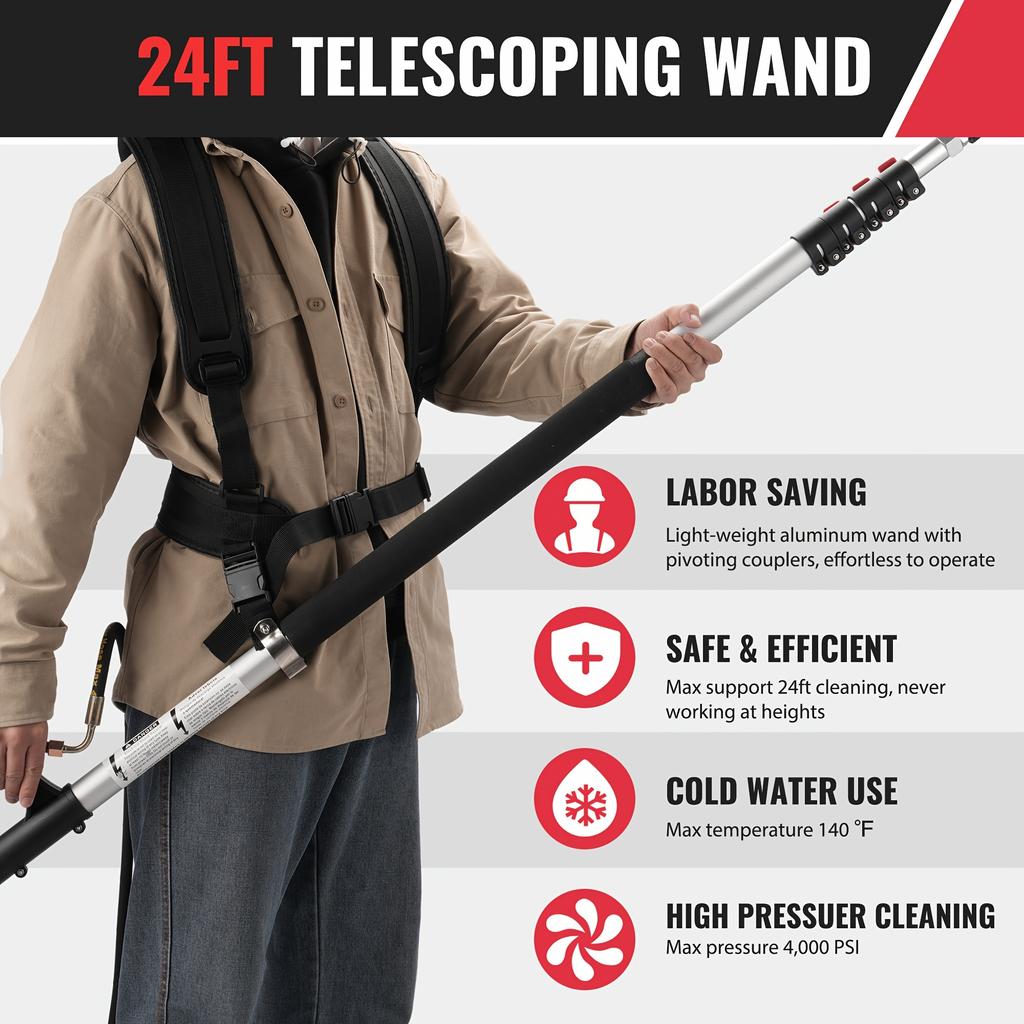 Telescopic Pressure Washer Extension Wand, 24 Ft. Extension 5-Stage Power Washer Extension Wand