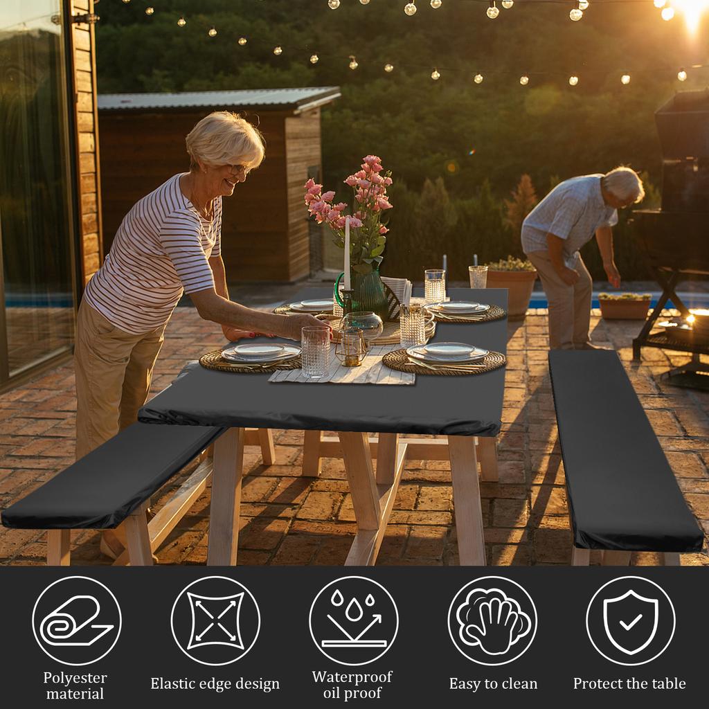 Чехол для стола для пикника Полиэстер Водонепроницаемая Ветрозащитная Скатерть с Чехлом для Скамейки Многоразовая Скатерть на Резинке Наружный Пылезащитный Чехол