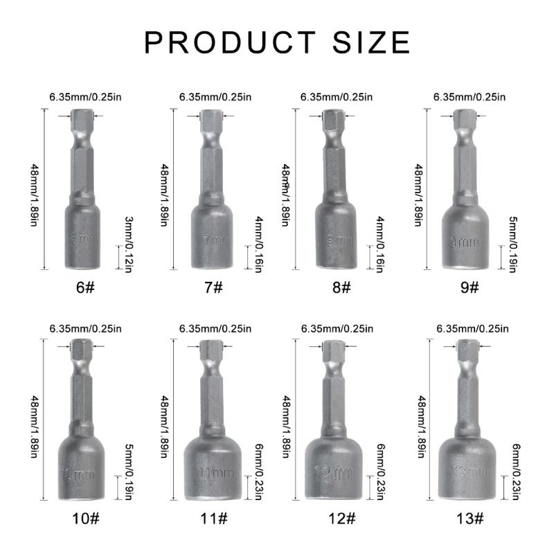6-13mm Socket Magnetic Nut Screwdriver 1/4in Hex Electric Drill Bit Magnetic Nut Driver Socket Hexagonal Socket Head