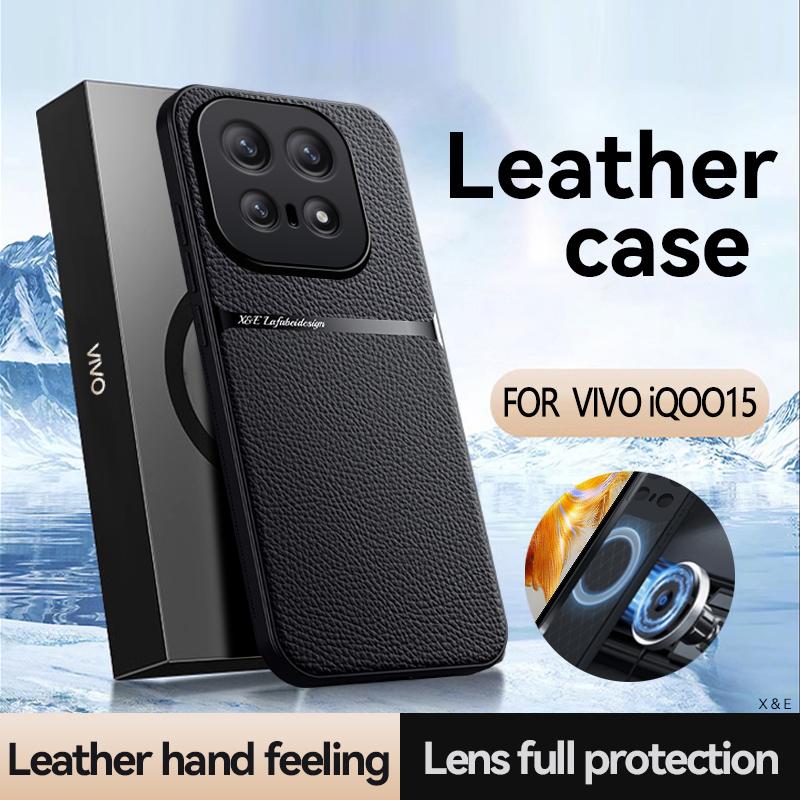 Для VIVO IQOO 15 текстура кожи, встроенный магнитный мягкий ТПУ противоударный чехол для телефона с защитой от отпечатков пальцев
