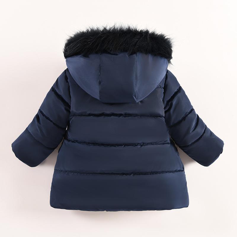 Цветы Осень Зима Куртка для девочек Меховой воротник Сохраняет тепло Пальто маленькой принцессы Капюшон Молния Детская верхняя одежда 1-5 лет Детская одежда