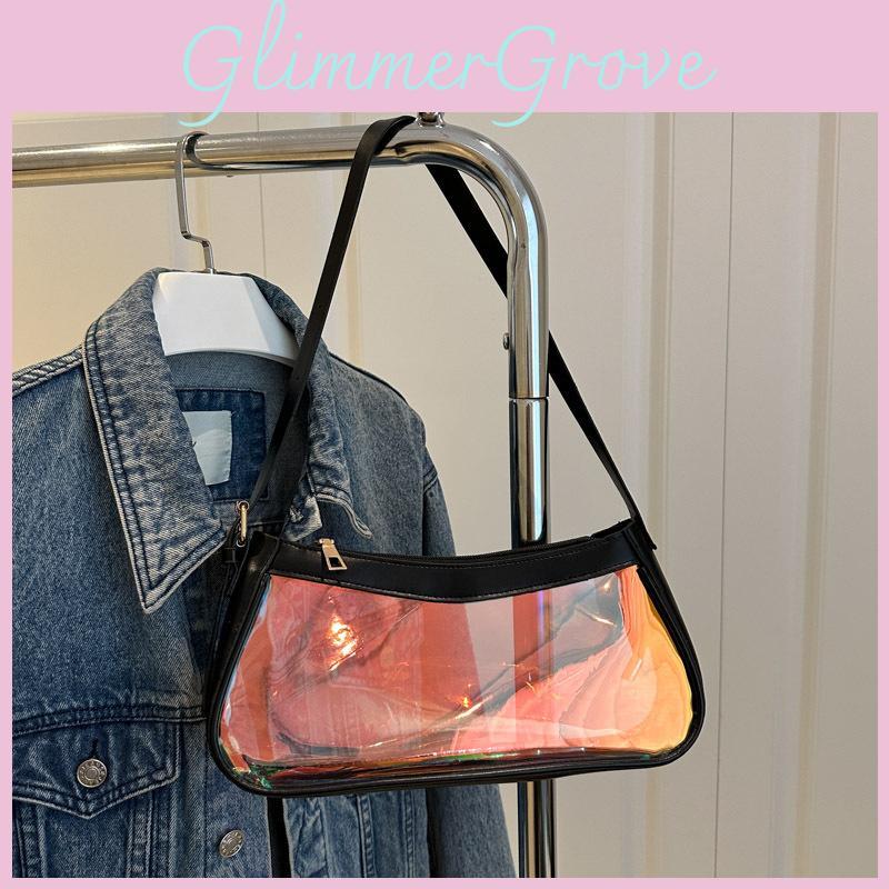 This stylish small shoulder bag features a transparent PVC construction with a laser element, enhancing its modern streetwear appeal. Measuring approximately 28.5cm in width and 13.5cm in height, it offers a compact yet functional design suitable for daily use. The bag employs a secure zipper closure and includes an interior polyester lining with an inner slip pocket for organization, providing reliable storage for essentials.