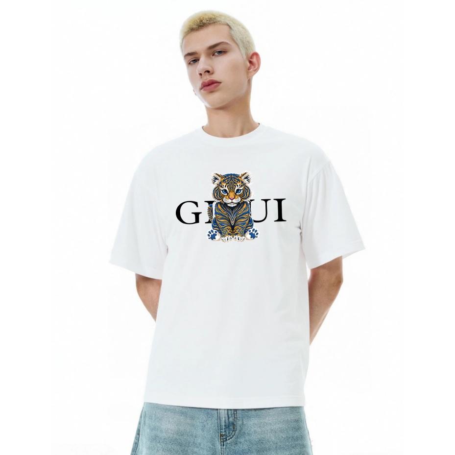 Футболка с принтом тигра, свободного кроя, унисекс, повседневная, универсальная, трендовая, с коротким рукавом