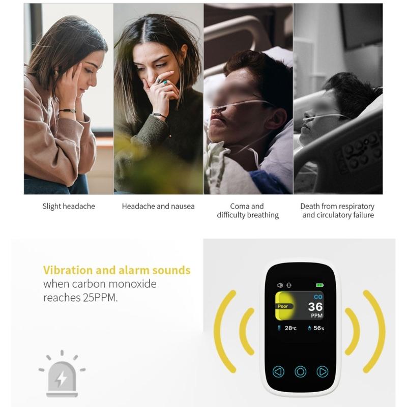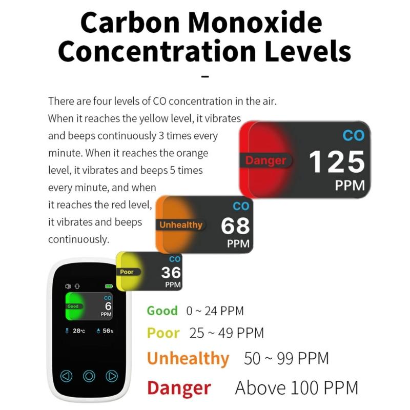 Детекторы угарного газа, Детекторы CO со звуковой сигнализацией Подсветка экрана 999 PPM Портативный измеритель газа CO