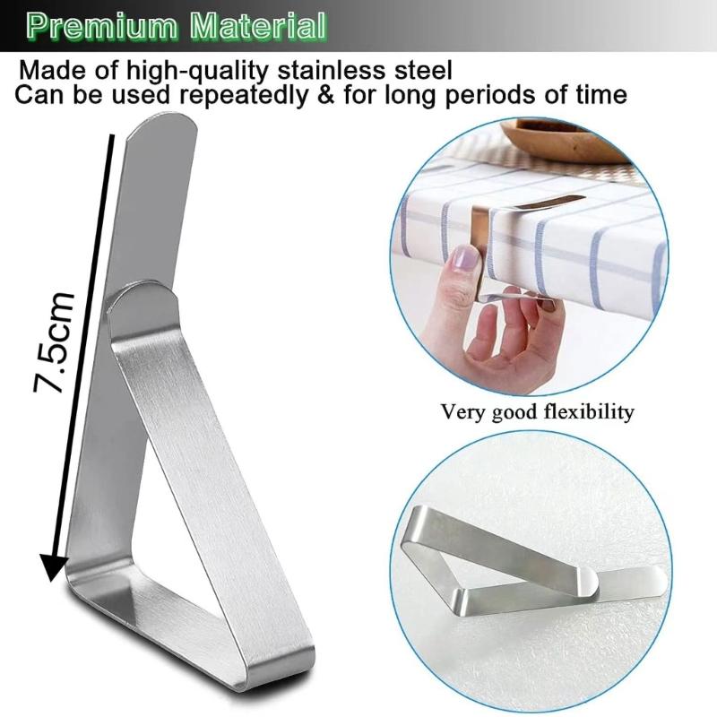 Убедитесь, что ваша скатерть останется на месте, с помощью этих противоскользящих зажимов для скатерти. Изготовленные из нержавеющей стали и поликарбоната, с прочными зажимами и нескользящими накладками, они надежно фиксируют вашу скатерть, предотвращая любое нежелательное смещение.
